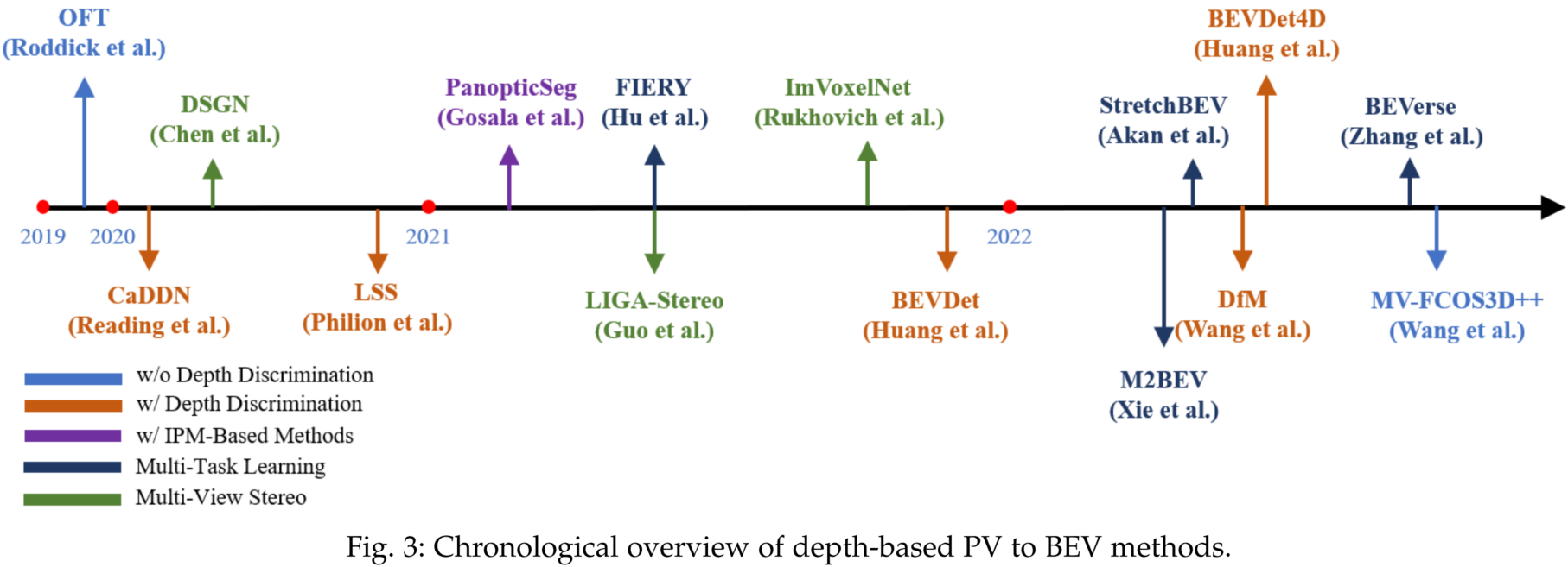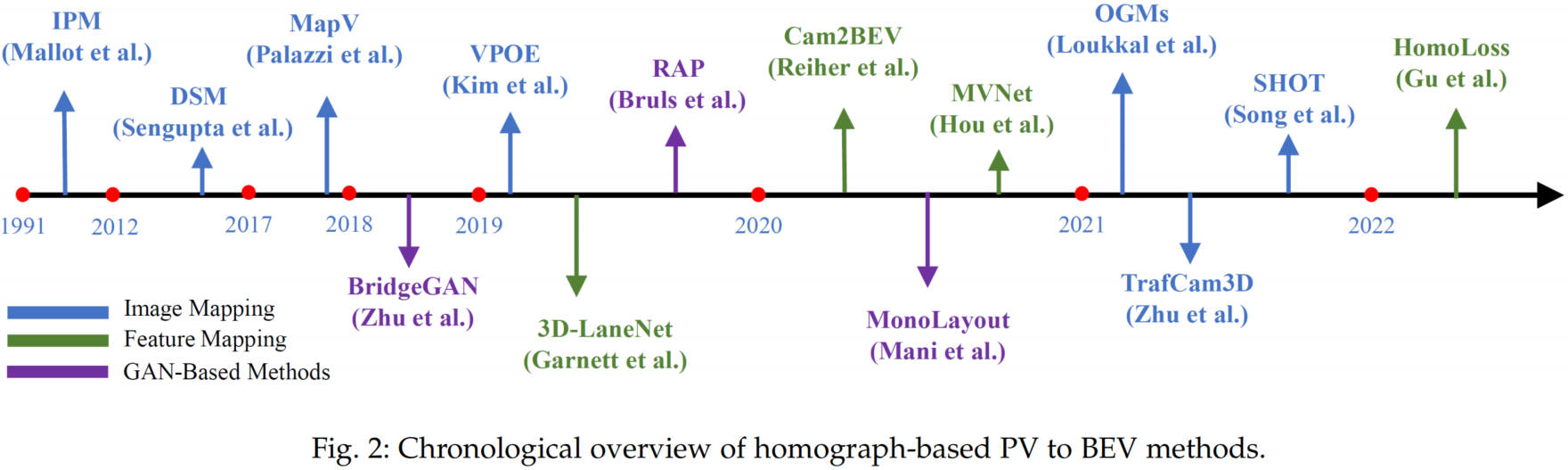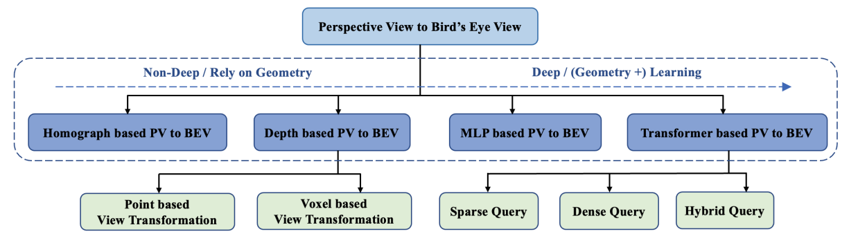 这份资源特别适合自动驾驶算法研究人员、计算机视觉开发者以及相关领域的学生使用。它不仅系统梳理了该技术的发展脉络,还详细分类整理了基于几何变换(如单应性矩阵)和基于深度估计(如 Lift-Splat-Shoot 机制)的两大主流技术路线。其独特亮点在于构建了完整的知识图谱,收录了从早期经典算法到最新前沿研究的数十篇关键论文,并提供了清晰的时间线演进图和数据集汇总。对于希望快速切入 BEV 感知领域、寻找灵感或对比不同技术方案的专业人士而言,Vision-Centric-BEV-Perception 是不可或缺的入门指南与参考手册。