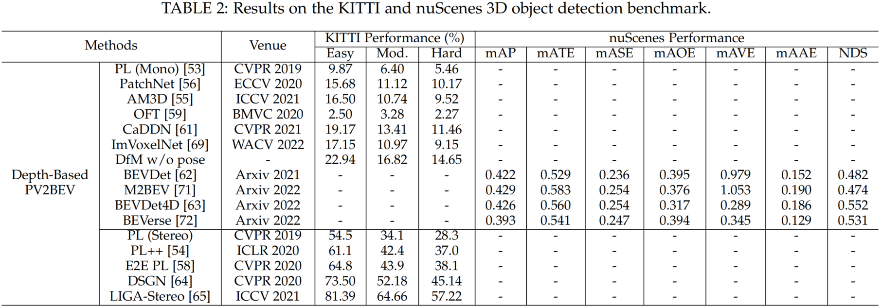基于深度的 PV2BEV