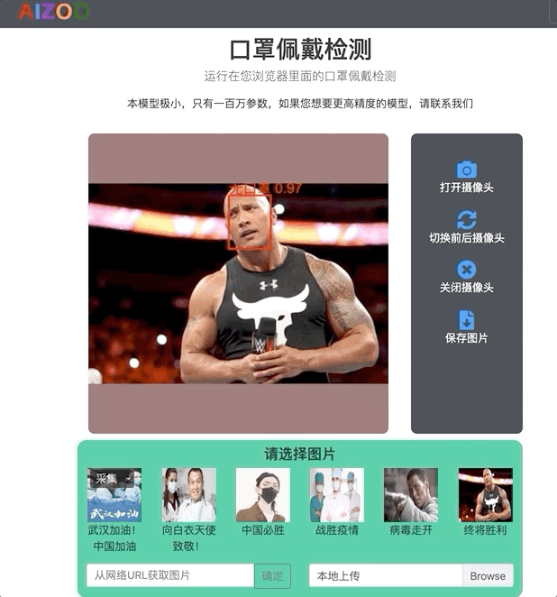 我们部署了一个网页,您可以点击链接体验。该页面由 Tensorflow.js 编写。