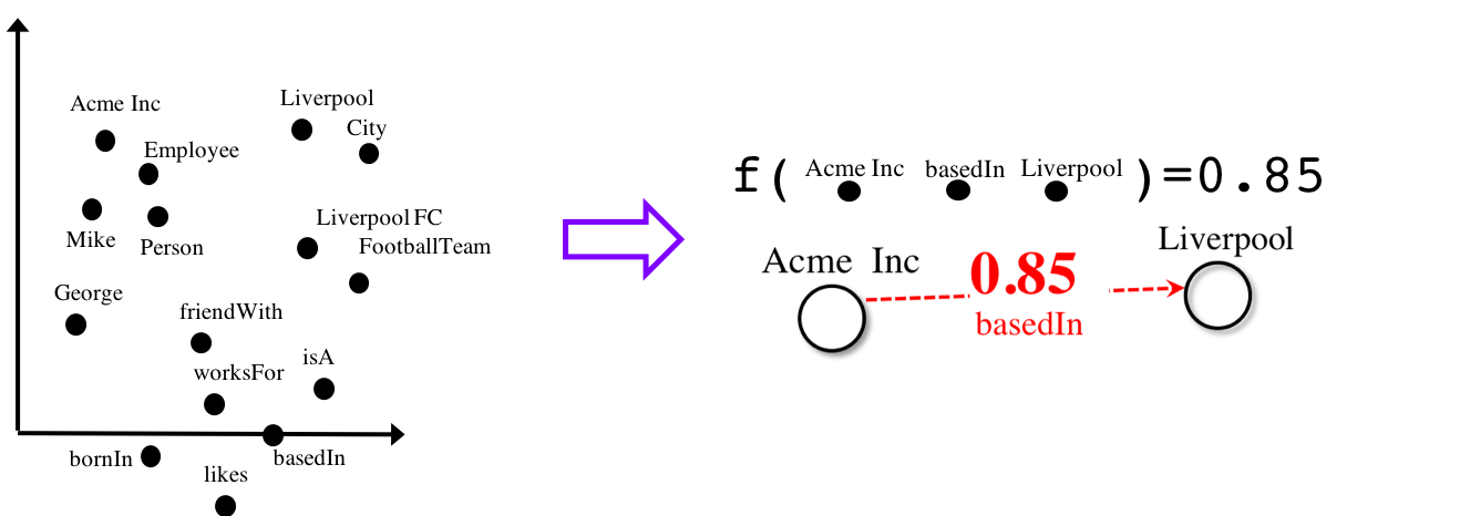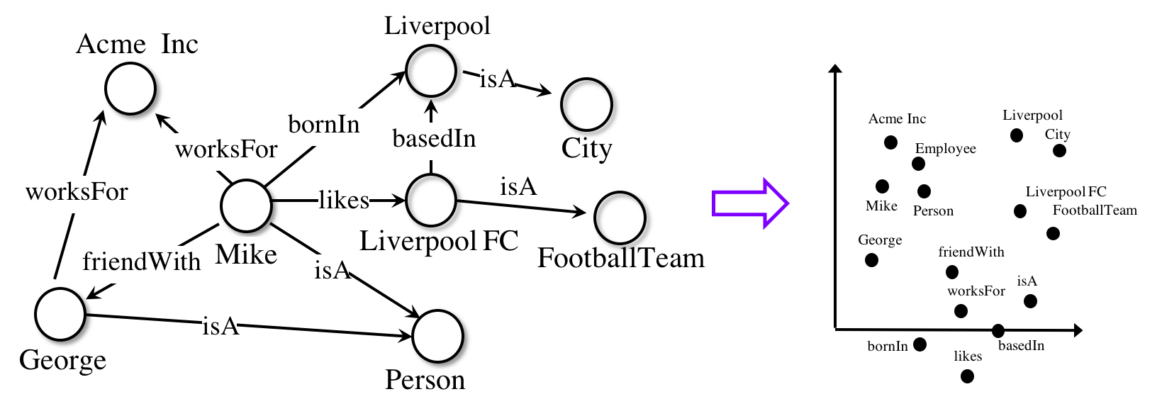 AmpliGraph 的机器学习模型会生成 知识图谱嵌入,即在度量空间中对概念的向量表示: