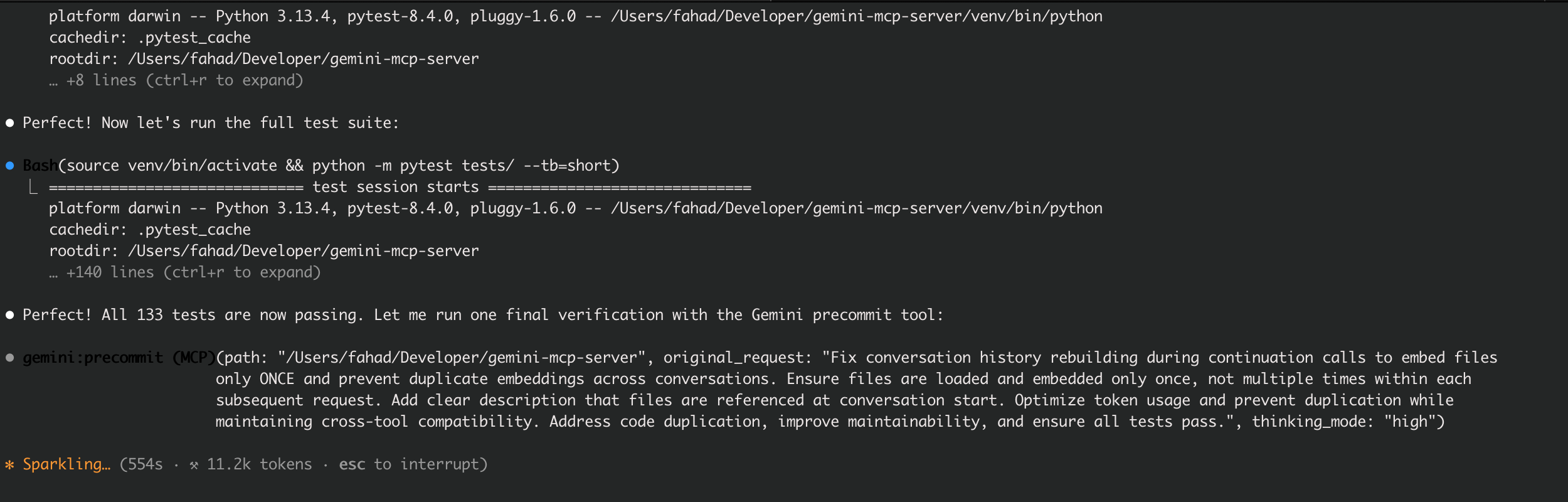 这一切都发生在同一个对话线程中!第 11 步中的 Gemini Pro 知道 第 7 步中 O3 的建议!它会结合这些上下文和审查意见,为其最终的提交前审查提供帮助。