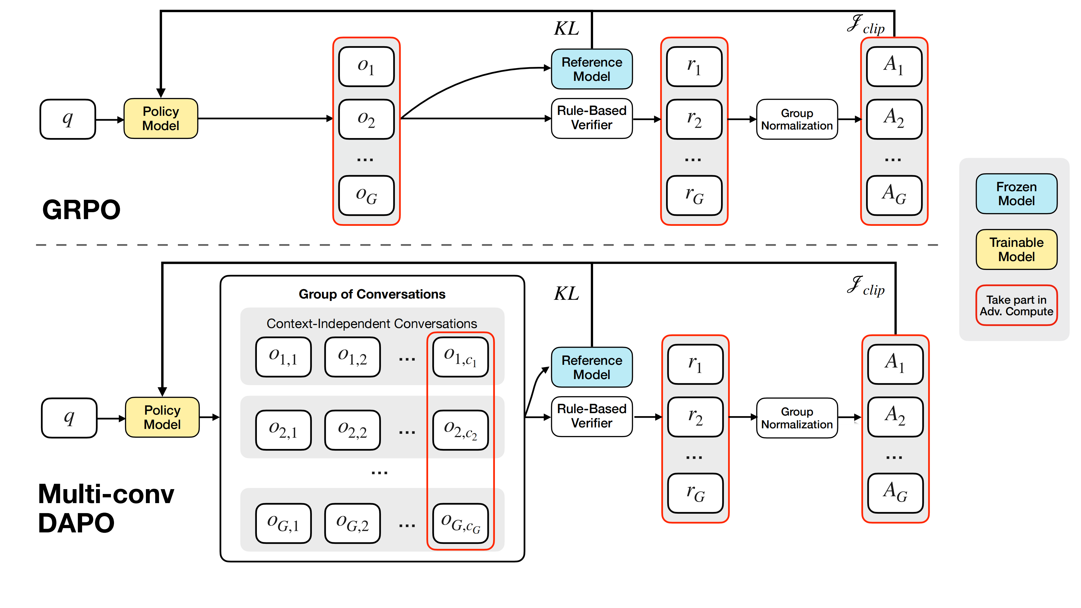 我们使用可验证奖励的强化学习(RLVR)来训练MemAgent,并扩展了DAPO算法,以支持多轮独立于上下文的对话中代理工作流的端到端优化。