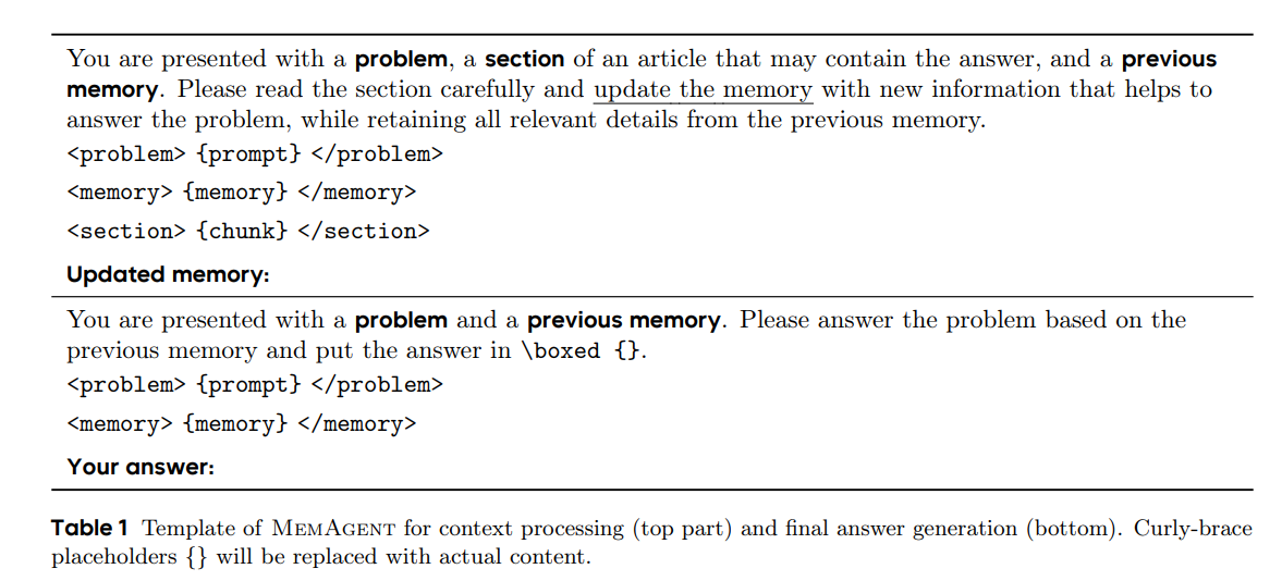 - 🚀 新型记忆机制 引入了MemAgent架构,能够在固定上下文窗口内处理任意长度的输入,突破了传统上下文窗口长度的限制。