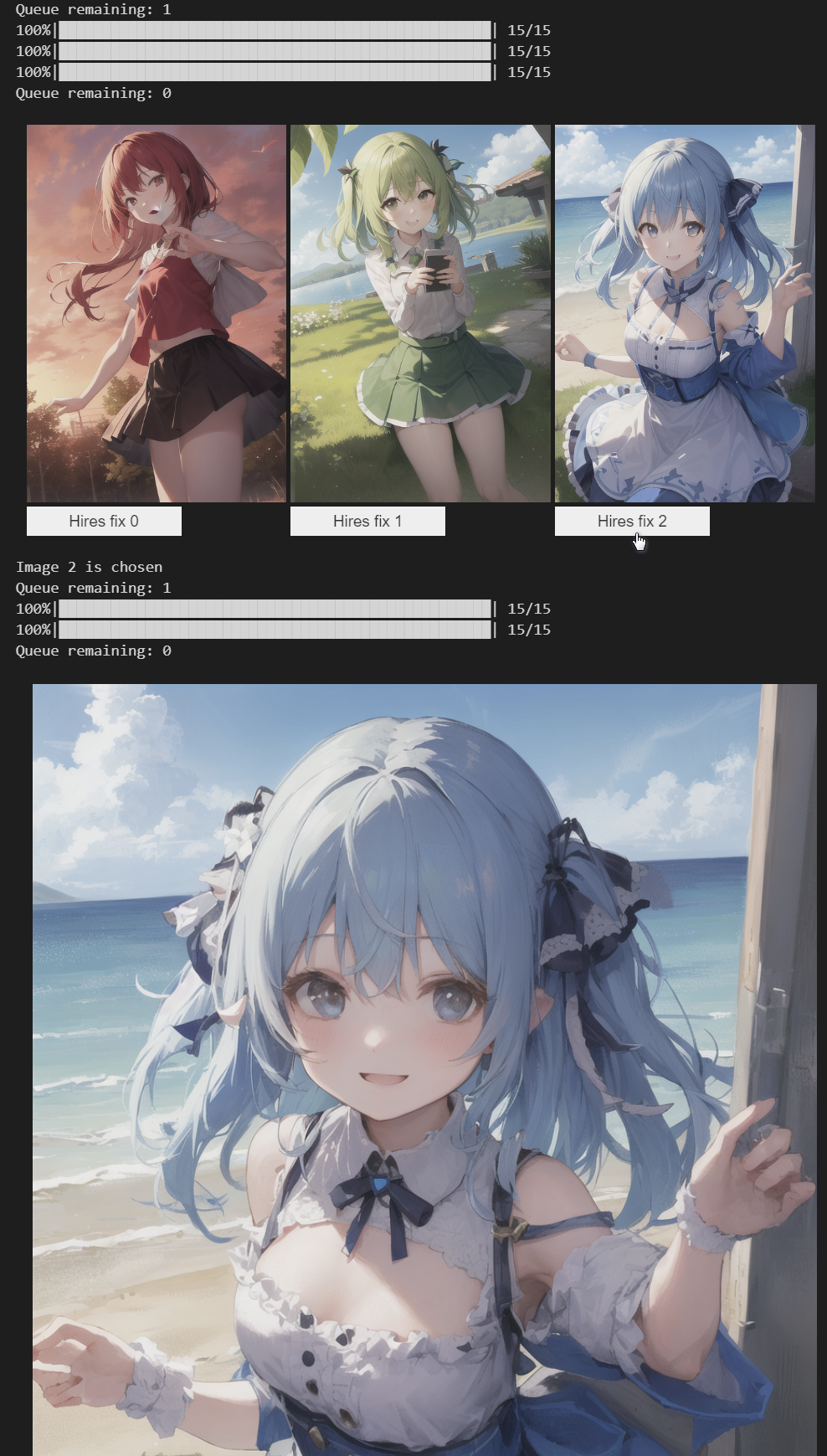 例如,一次生成 3 张图片,然后让用户决定哪些需要进行高分辨率修复:
