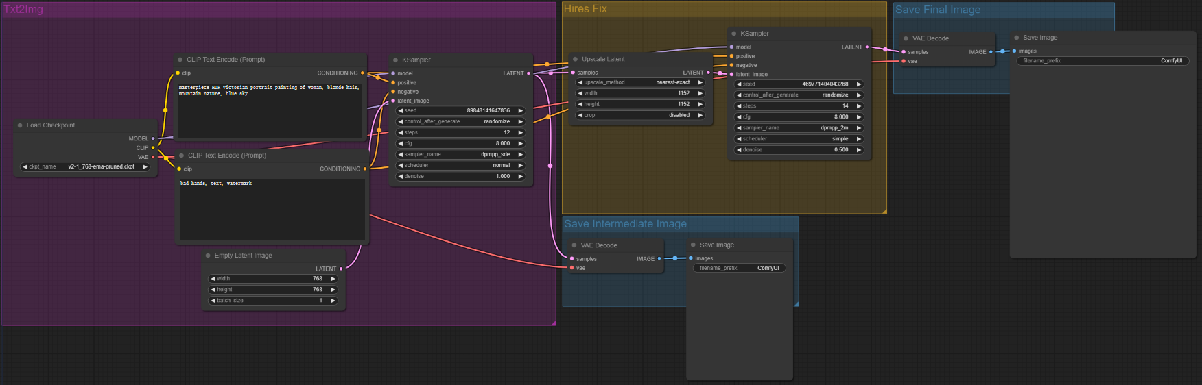 SaveImage(VAEDecode(latent, vae2), f'{seed} {color} 高分辨率')