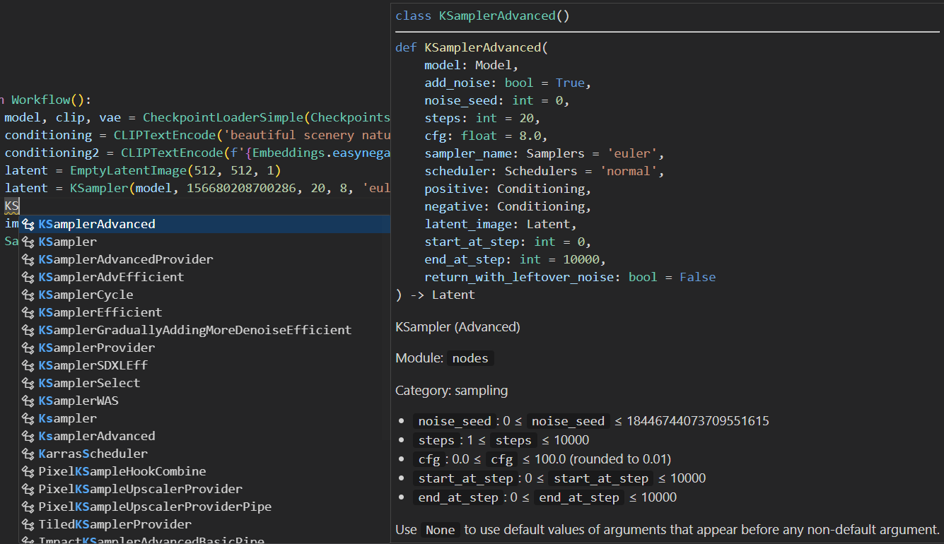 'v1-5-pruned-emaonly.ckpt'的字符串,而是可以直接使用:Checkpoints.v1_5_pruned_emaonly # 或 CheckpointLoaderSimple.ckpt_name.v1_5_pruned_emaonly嵌入向量也可以通过