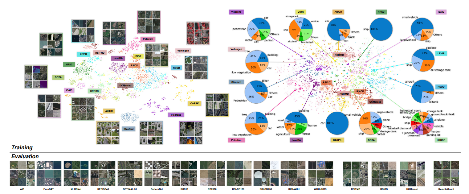 通用基础模型在人工智能领域的重要性日益凸显。尽管自监督学习(SSL)和掩码图像建模(MIM)在构建遥感领域的此类基础模型方面取得了令人鼓舞的成绩,但这些模型主要学习低级特征,需要标注数据进行微调,并且由于缺乏语言理解能力,无法应用于检索和零样本任务。