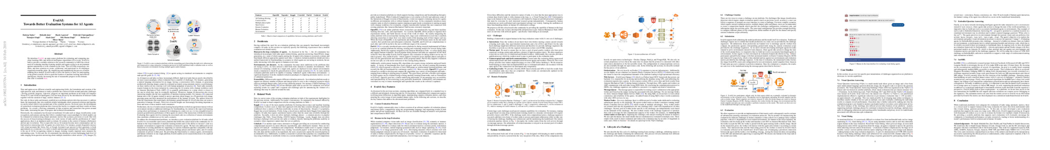 近年来,将解决某一任务的算法与其他现有方法进行比较变得越来越困难。这些比较往往受到算法实现细节差异、非标准数据集划分以及不同评估指标的影响。通过提供中央排行榜和提交接口,我们使研究人员更容易复现论文中提到的结果,并进行可靠且准确的定量分析。借助基于 MapReduce 框架的快速而稳健的后端系统,EvalAI 能够实时加速评估过程,从而帮助研究人员更轻松地复现技术论文中的结果,并开展可靠、精确的分析。