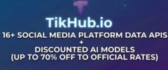 TikHub.io 提供覆盖TikTok、X、YouTube和Instagram等16+平台的900+条稳定API,拥有超过4000万的数据集。 同时还提供折扣AI模型——Claude、GPT、GEMINI等最高可享71%折扣。 |