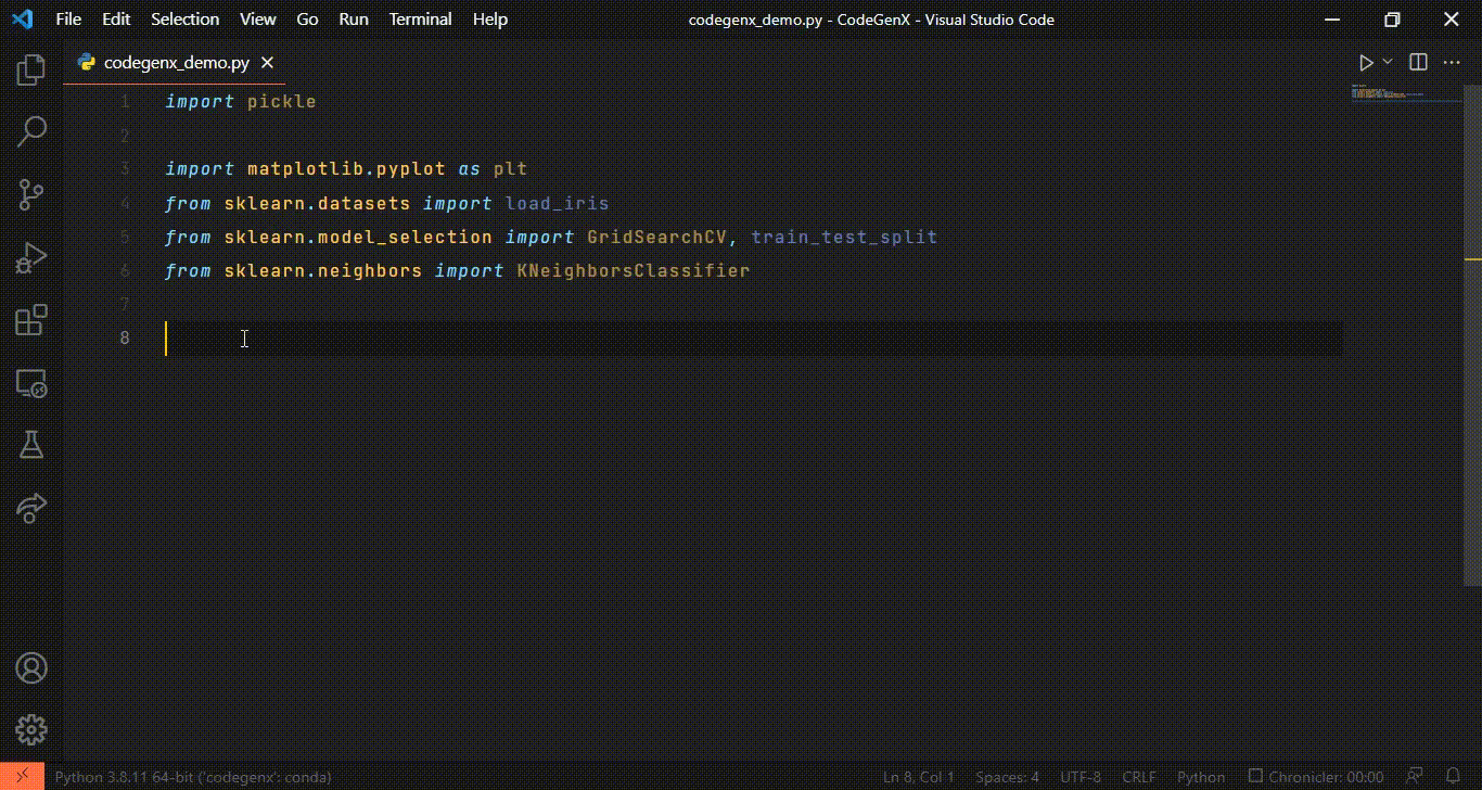 CodeGenX 是一款由人工智能驱动的代码生成系统!它以 Visual Studio Code 扩展的形式提供,并且是免费且开源的!