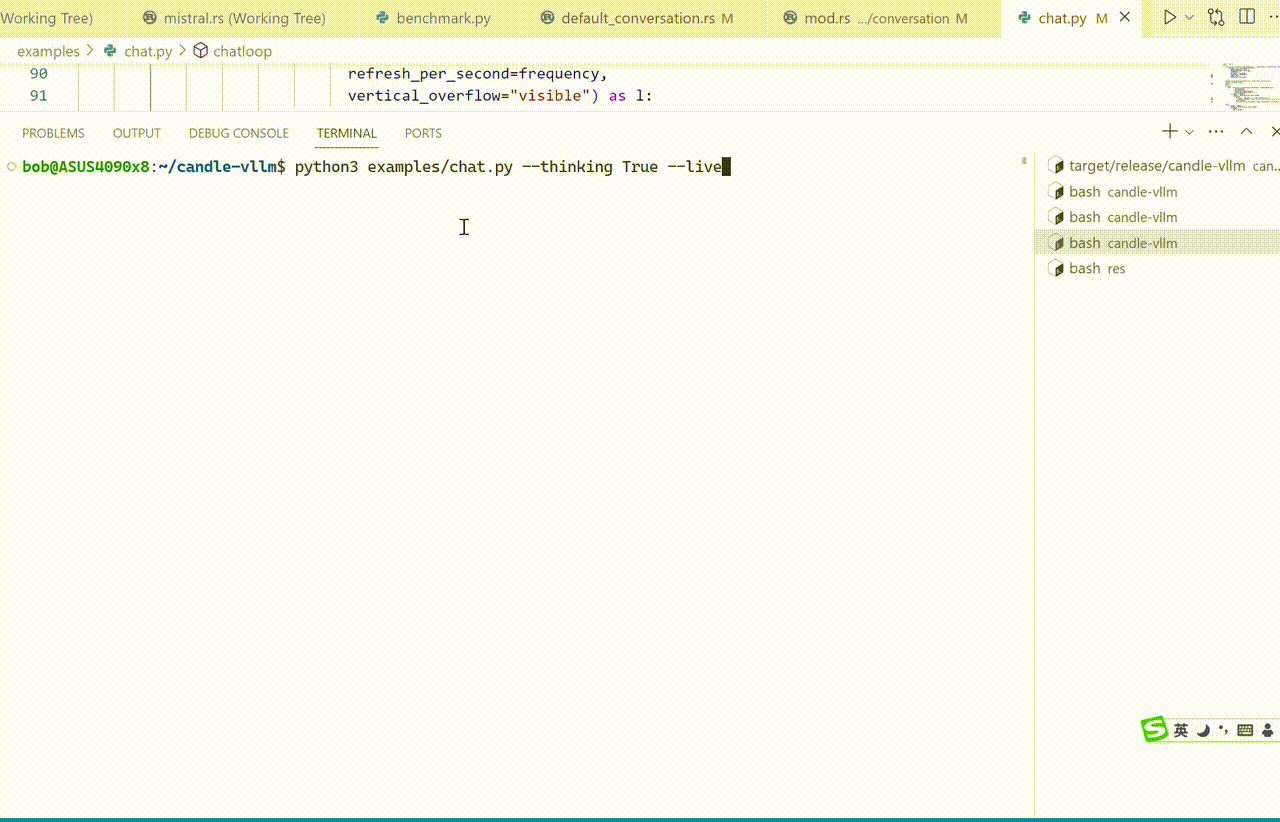 --thinking True的推理模型):python3 examples/chat.py --temperature 0.7 --top_k 64 --top_p 0.9 --thinking True --system_prompt "Thinking big!"使用迷你聊天机器人进行 Markdown 实时更新的聊天(可能会出现闪烁):
