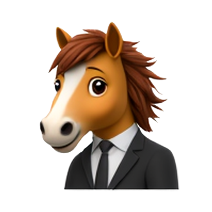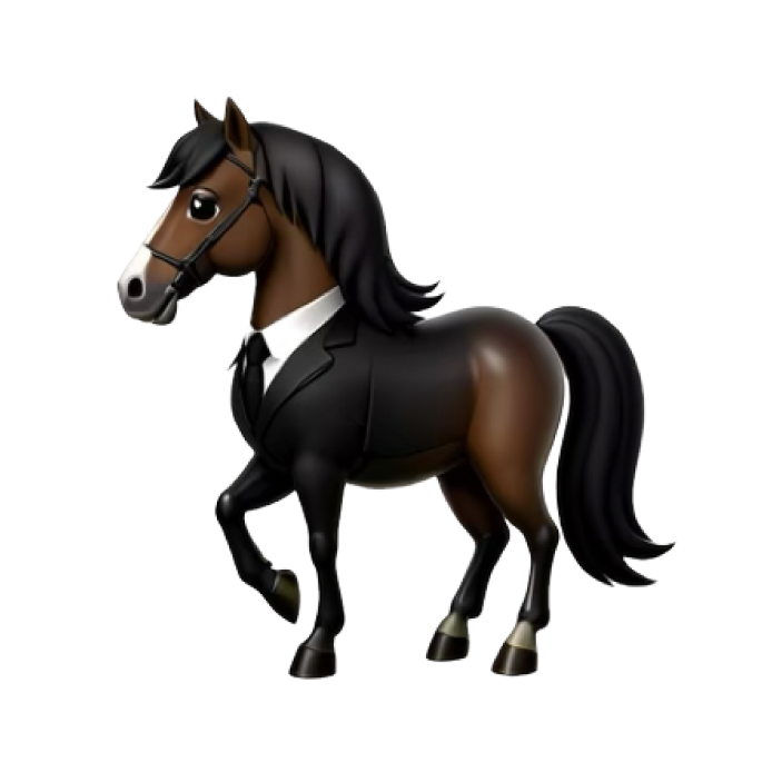 handsome horse in black suit and tie with flowing mane(动物表情符号) |