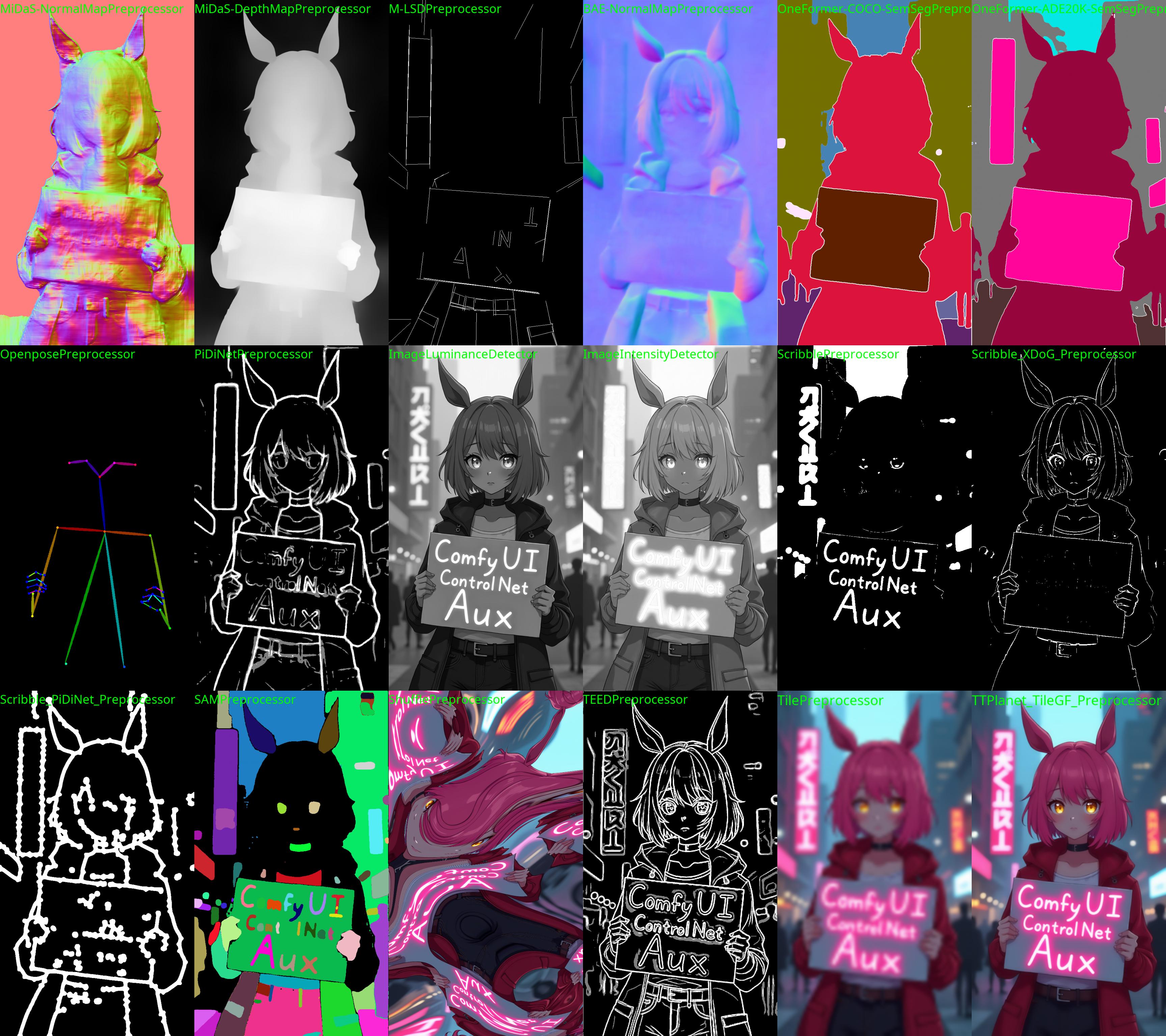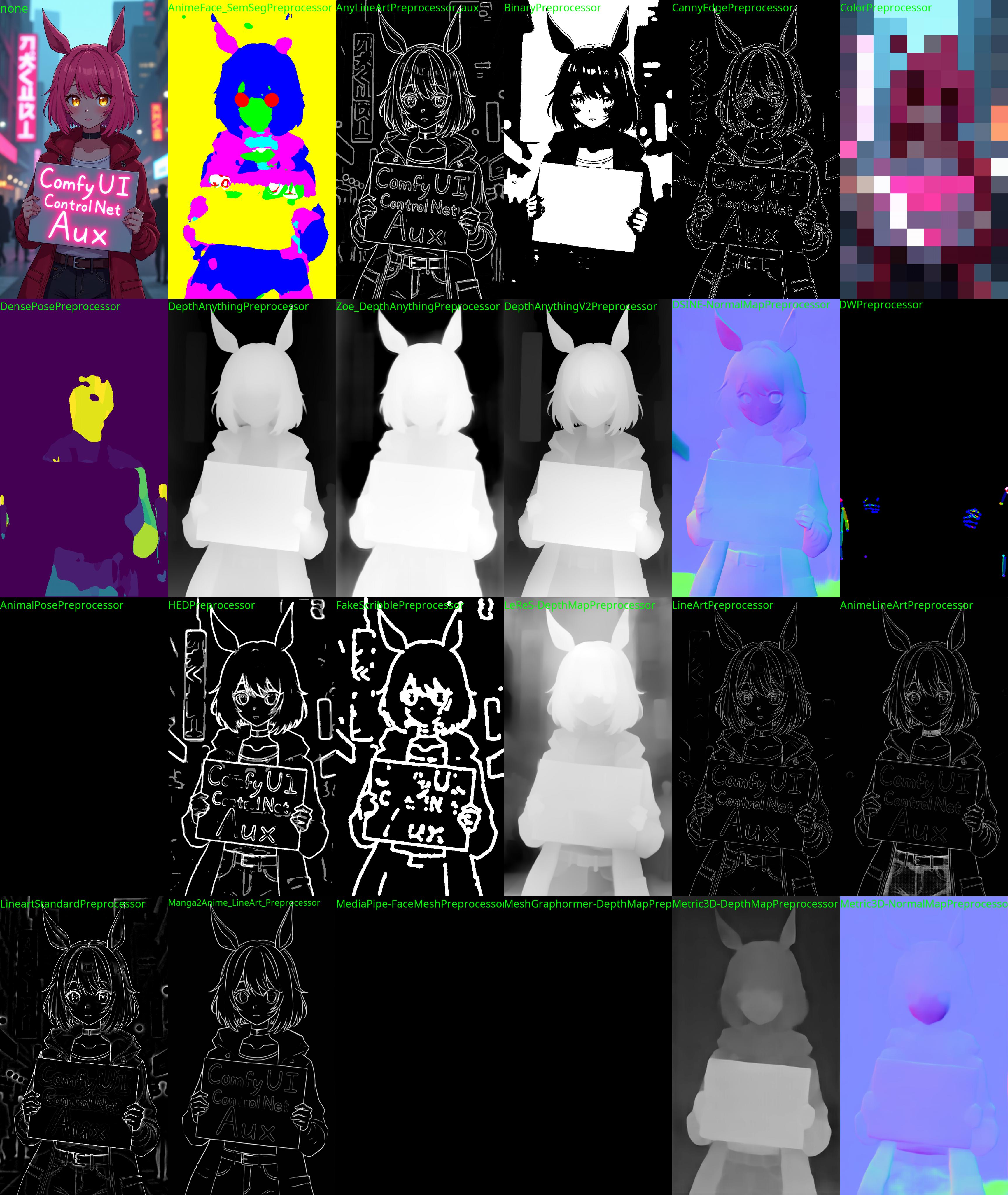https://github.com/Fannovel16/comfyui_controlnet_aux/blob/main/examples/ExecuteAll.png 输入图像:https://github.com/Fannovel16/comfyui_controlnet_aux/blob/main/examples/comfyui-controlnet-aux-logo.png