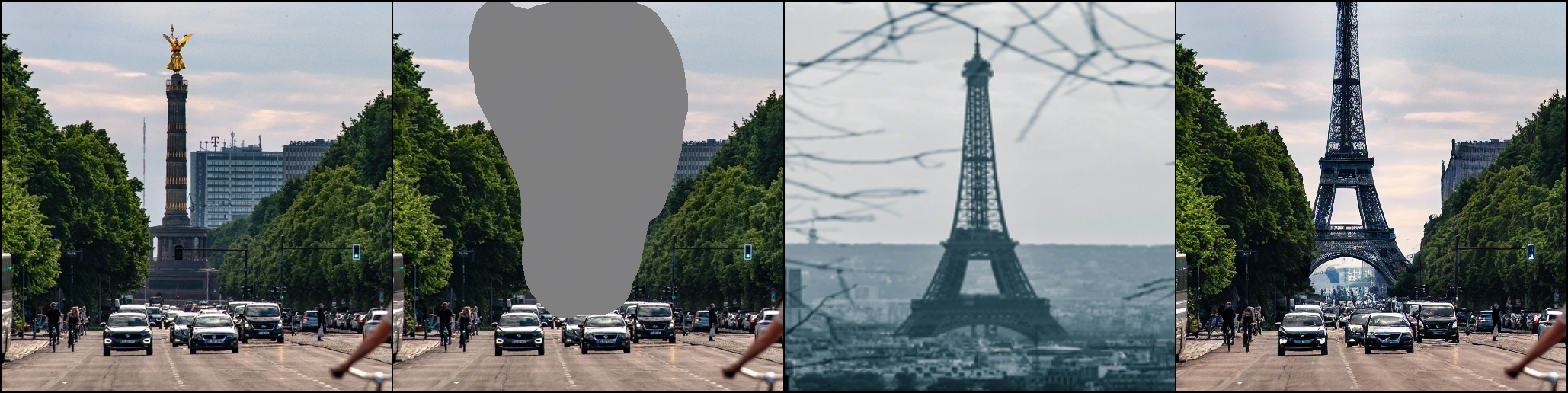 - 一键生成:无需手动修图,单次前向推理即可完成高质量合成,将原本数小时的精修工作缩短至几秒钟。
