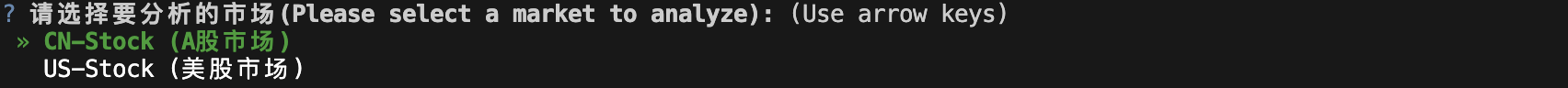 程序启动后,您将进入终端交互式界面,可以选择您要分析的市场。