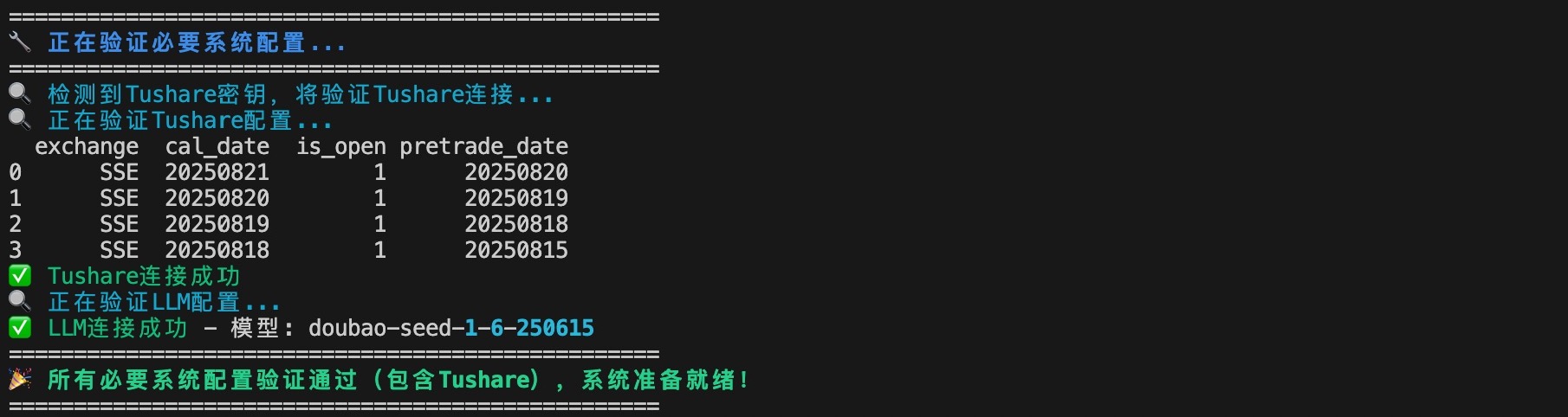 注意:LLM API 和 VLM API 需要您自行申请,具体根据您使用的平台和模型填写URL、API Key以及模型名称。当前配置文件默认支持AKShare数据接口,您也可以自行配置Tushare接口及配套配置来获得更好的表现。