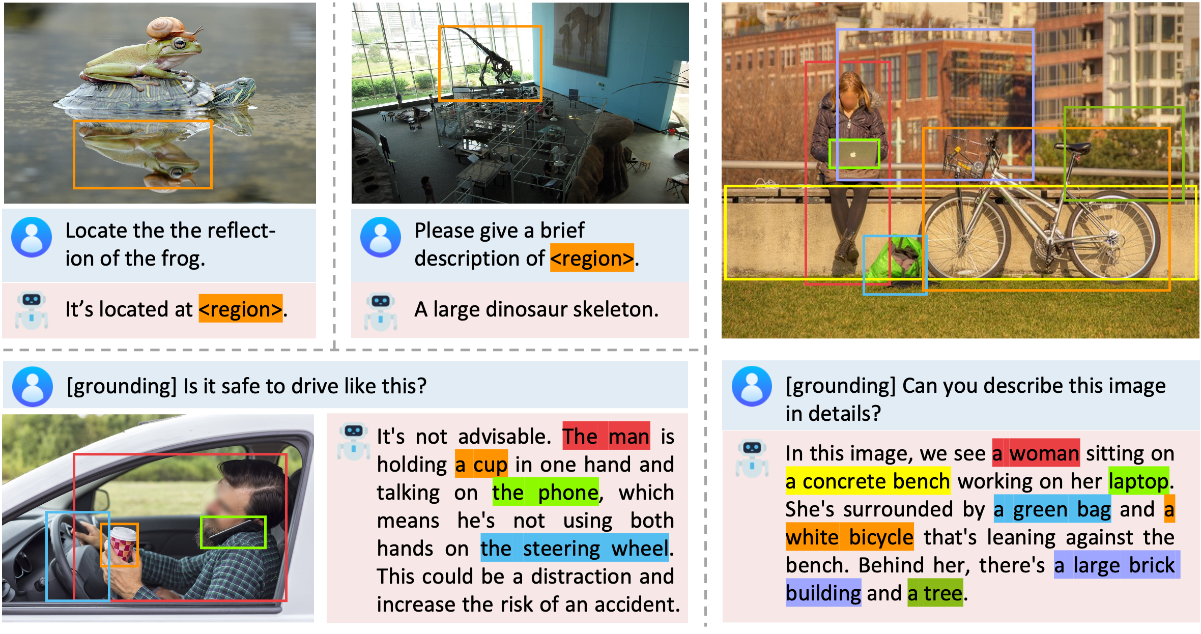 - 原生区域 grounding 能力:Groma 支持直接输入用户定义的边界框(Box),能立即针对该区域生成精准的长文本描述,实现“指哪打哪”。