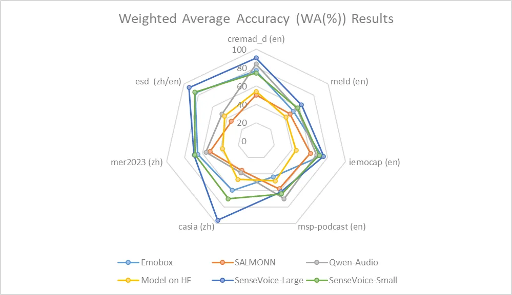 - 具备出色的情感识别能力,在测试数据上达到并超越当前最佳的情感识别模型的效果。