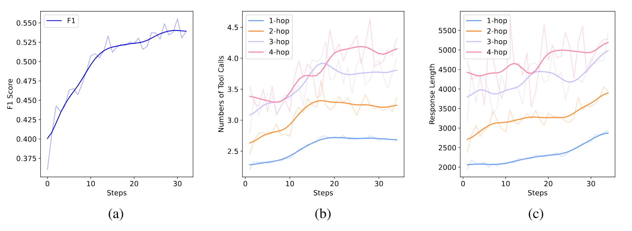 我们在开放域研究任务上的大量实验表明,与基于提示工程的基线相比,DeepResearcher 的性能提升了高达 28.9 分;与基于 RAG 的强化学习智能体相比,也提升了高达 7.2 分。我们的定性分析揭示了从端到端强化学习训练中涌现的认知行为,包括制定计划、从多个来源交叉验证信息、进行自我反思以调整研究方向,以及在无法找到明确答案时保持诚实的能力。我们的研究结果强调,在真实网络环境中进行端到端训练不仅仅是一个实现细节,而是开发与实际应用相一致的稳健研究能力的基本要求。