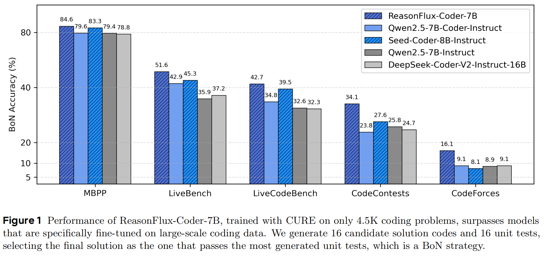 - [2025/6/04] 🎉 我们发布了经过优化的编码大模型 Co-Evolving RL,包括 ReasonFlux-Coder-7B 和 ReasonFlux-Coder-14B,它们的表现优于同等规模的 Qwen Coders 和 DeepSeek Coders,并且自然地融入常见的推理时扩展和代理式编码流程。我们还发布了长链式思维模型 ReasonFlux-Coder-4B,其表现超越 Qwen3-4B,同时在单元测试生成方面达到了 64.8% 的效率。