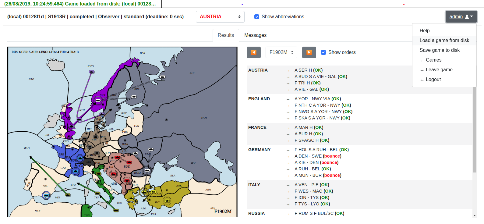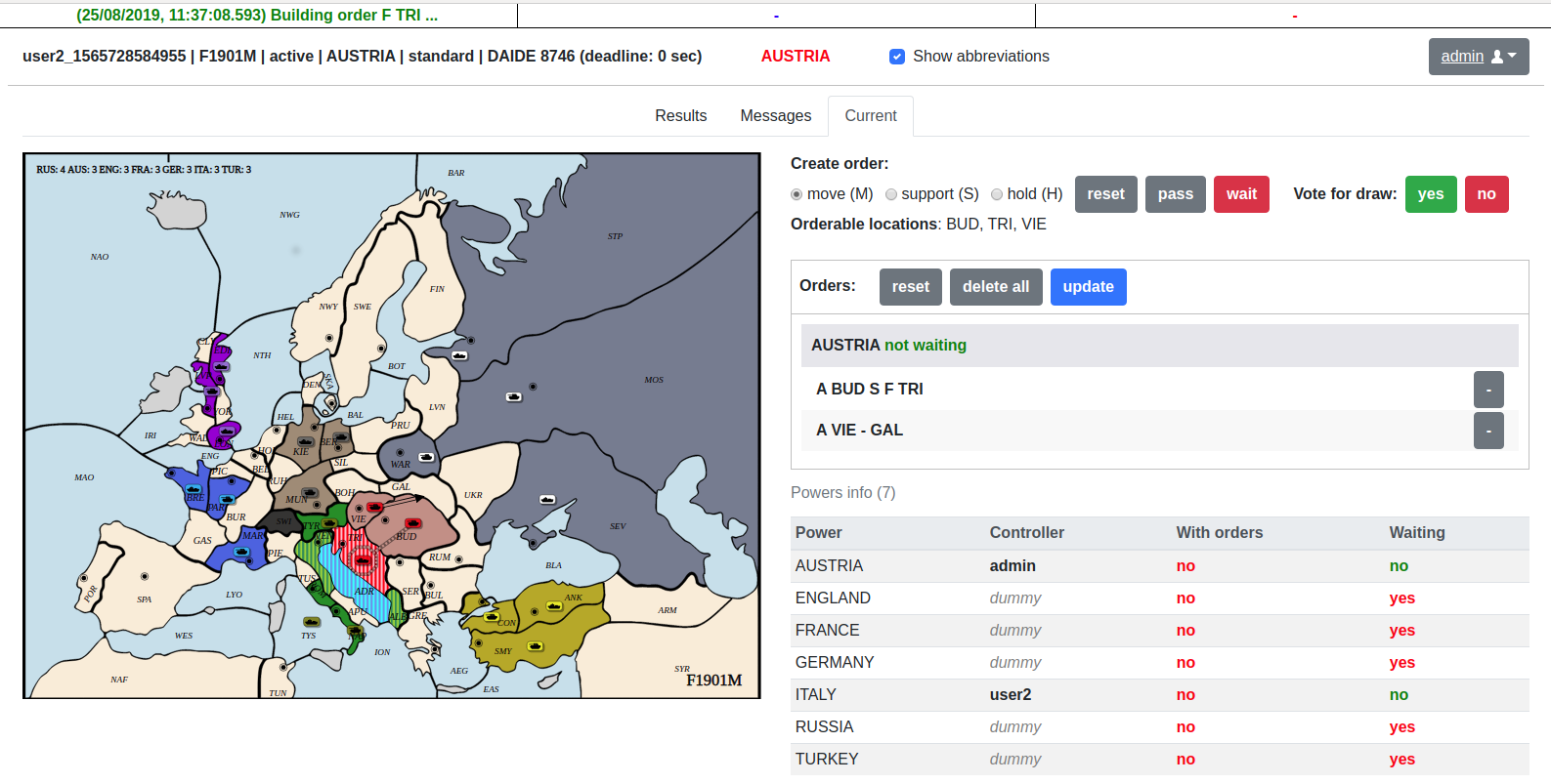 print('[%s/%s] - 提交了: %s' % (power_name, game.get_current_phase(), orders))