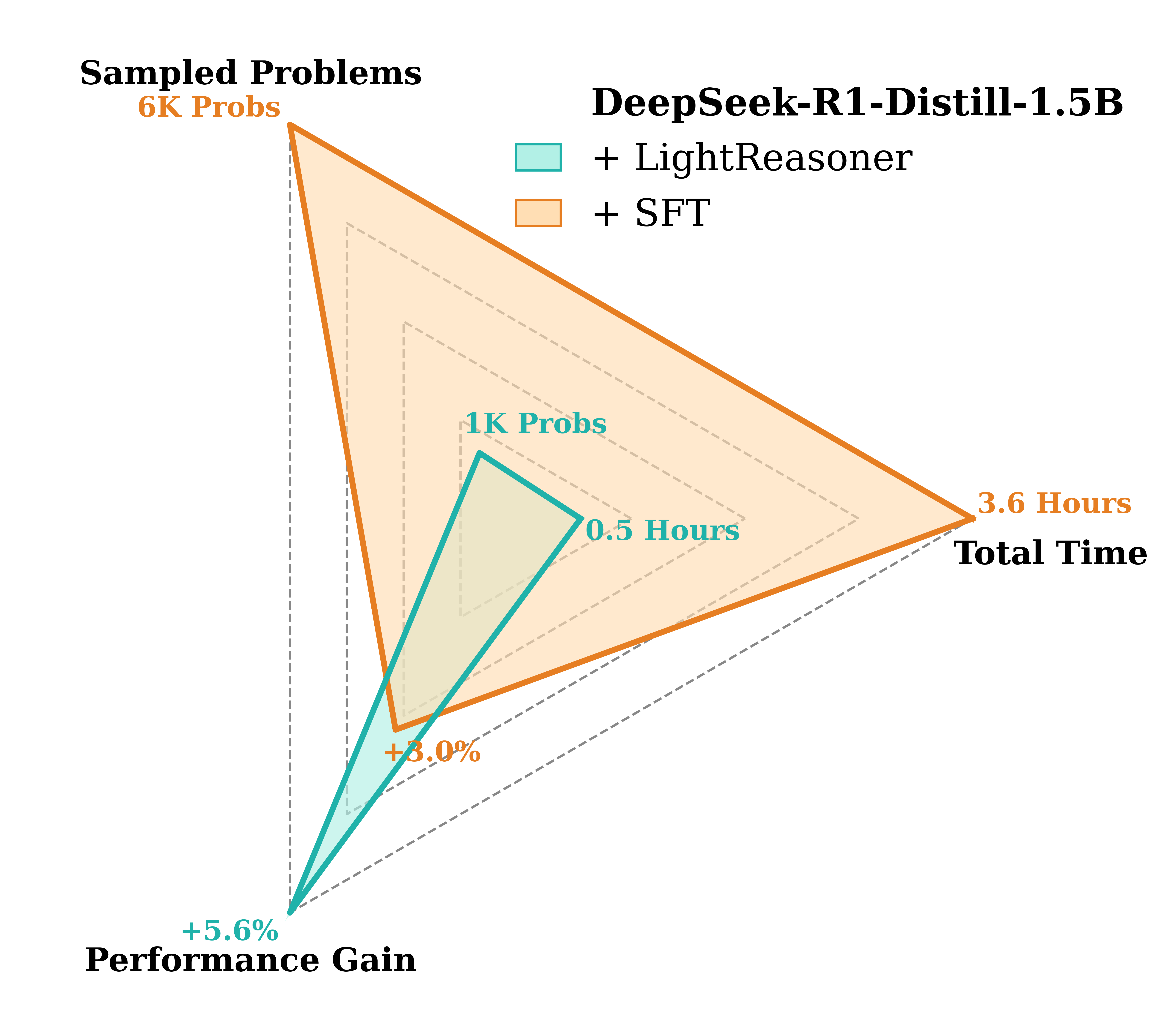 | + LightReasoner | 0.4小时 | 1000 | 0.02百万 | +0.1% |