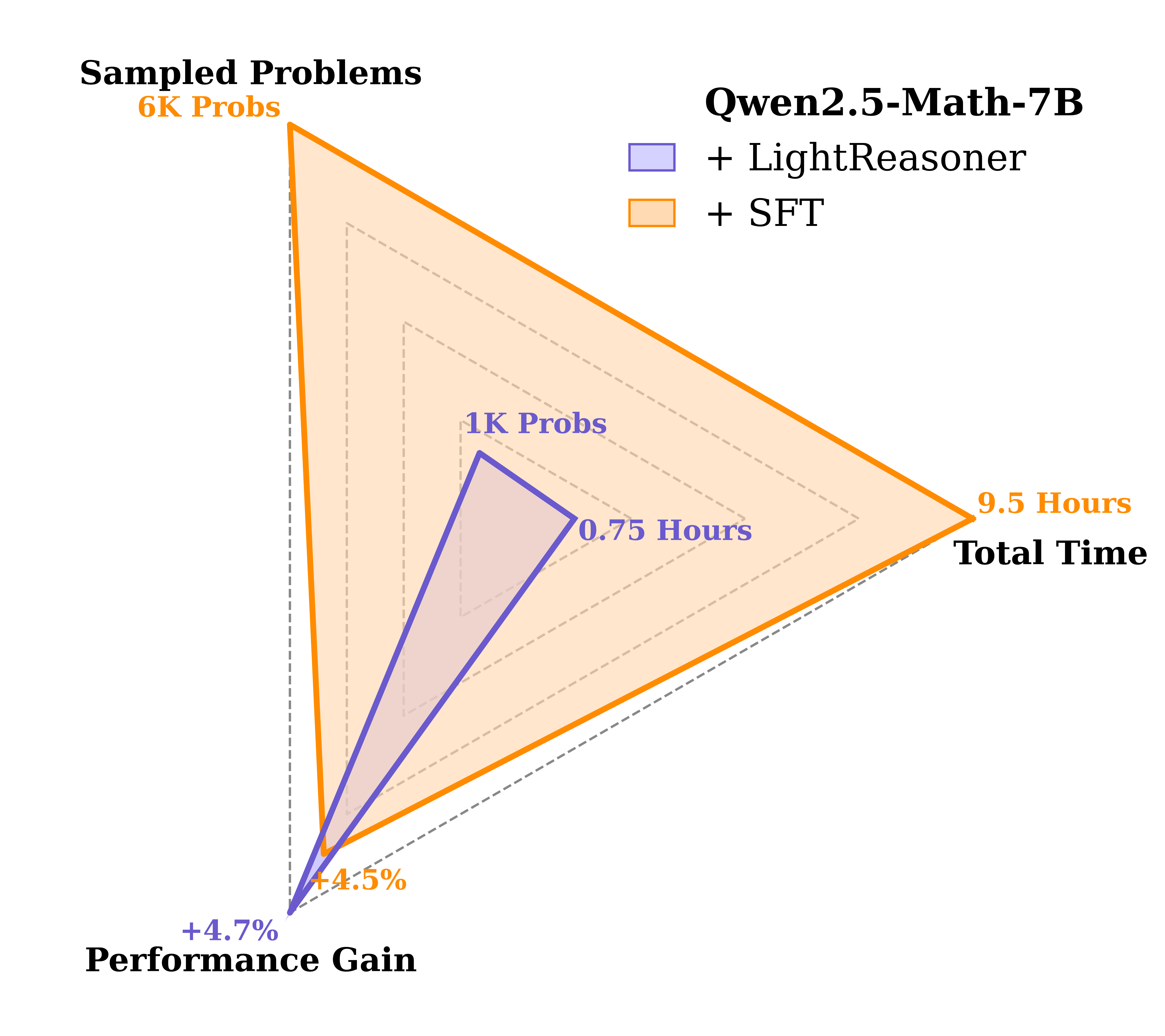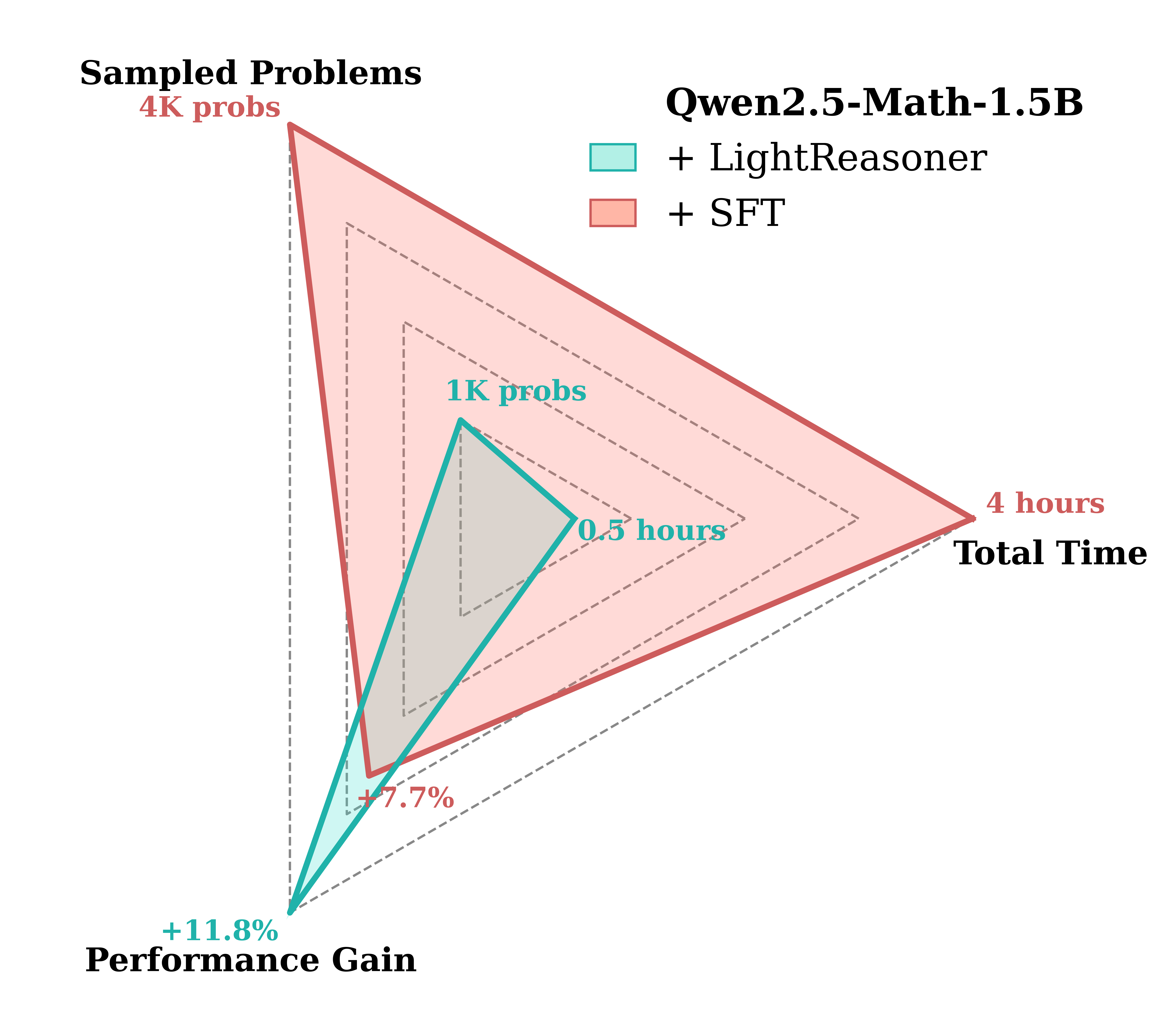 | + LightReasoner | 0.75小时 | 1000 | 0.02百万 | +4.7% |