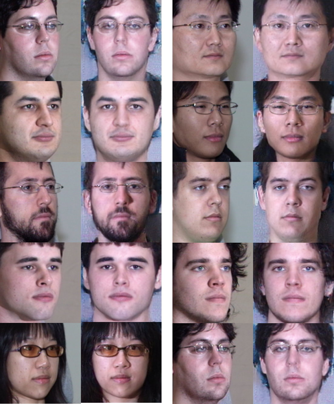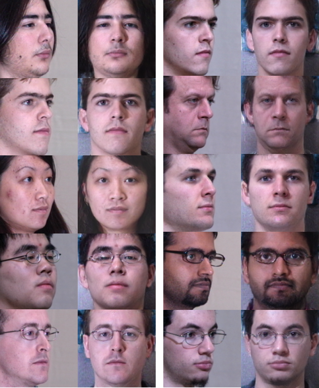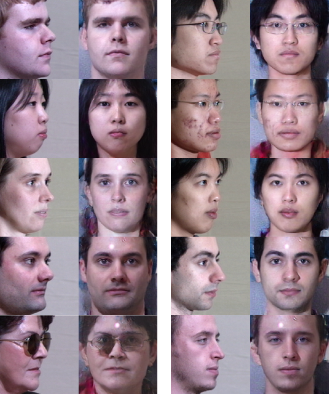 以下是每个角度的 10 对随机测试图像示例。