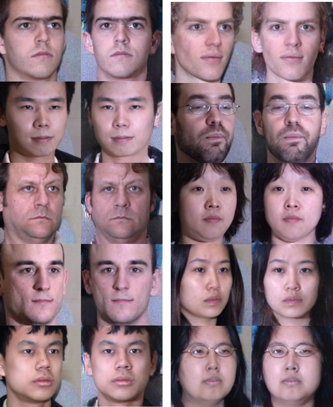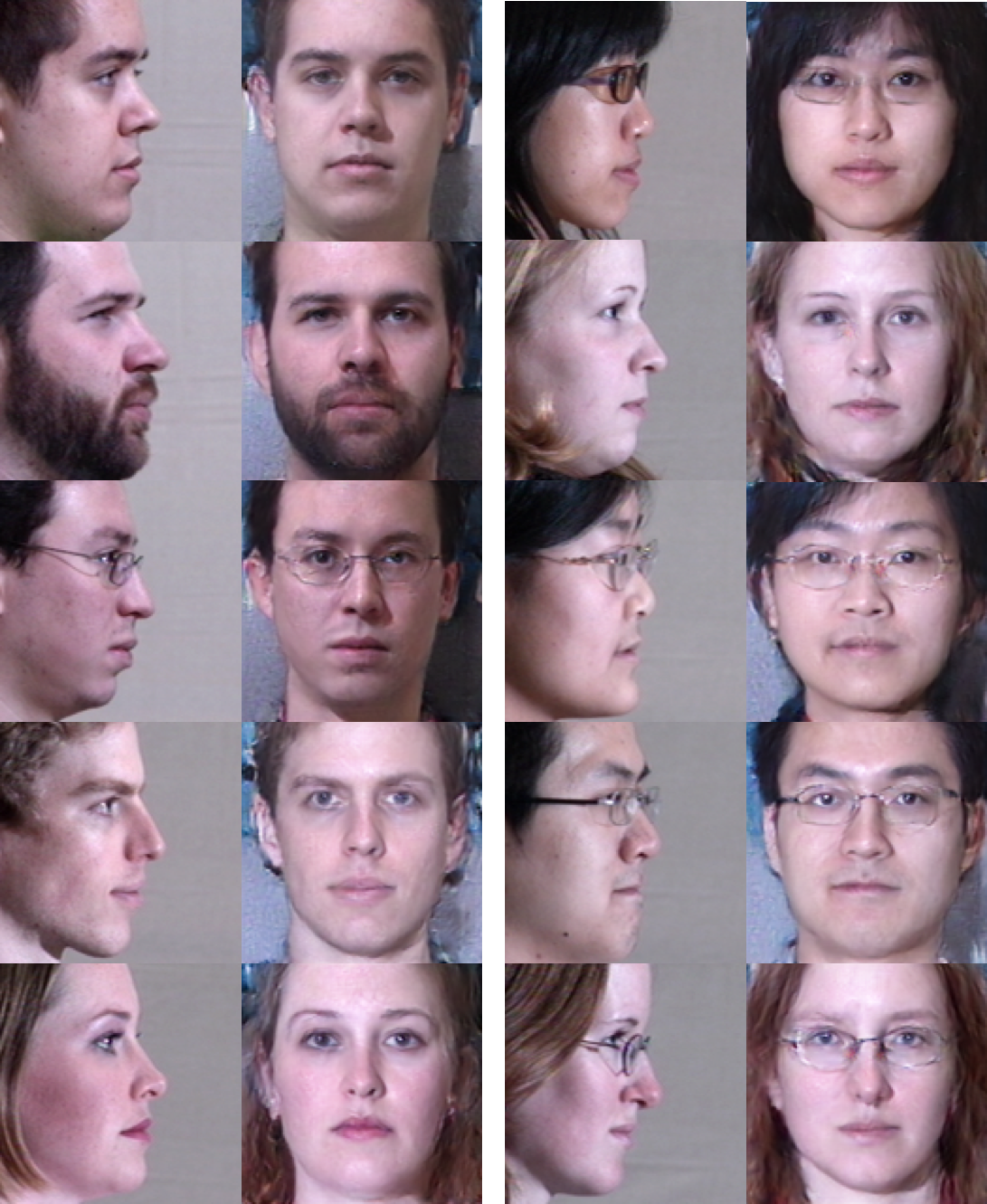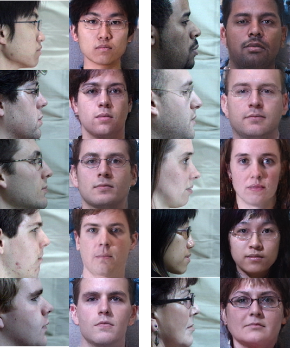 以下是每个角度的 10 对随机测试图像示例。