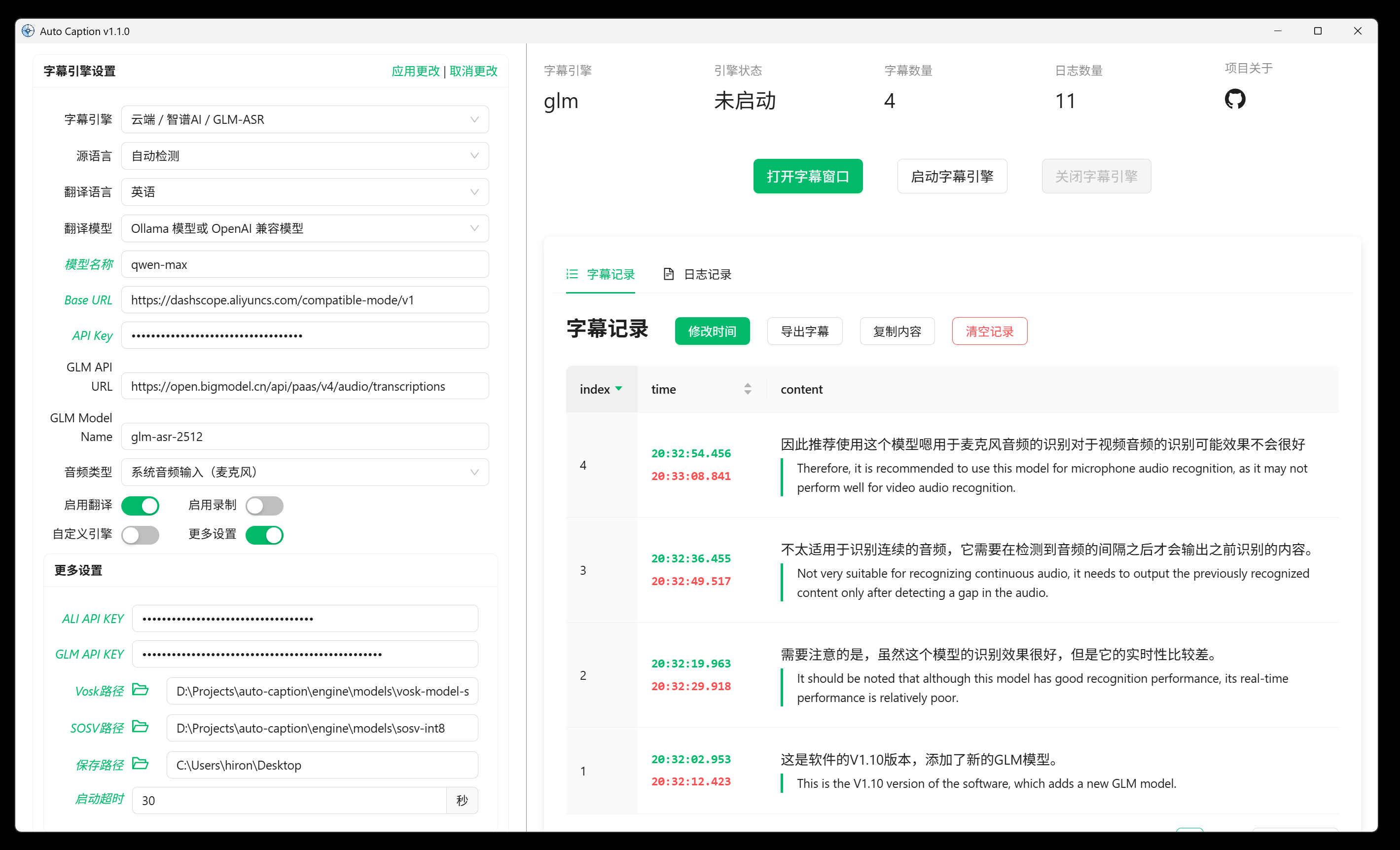 v1.1.1 版本已经发布,新增 GLM-ASR 云端字幕模型和 OpenAI 兼容模型翻译...