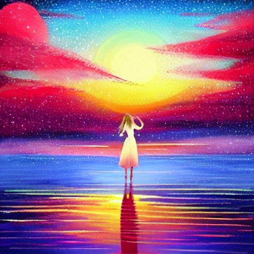 | 铁马冰河入梦来,3D绘画。 | 飞流直下三千尺,油画。 | 女孩背影,日落,唯美插画。 |