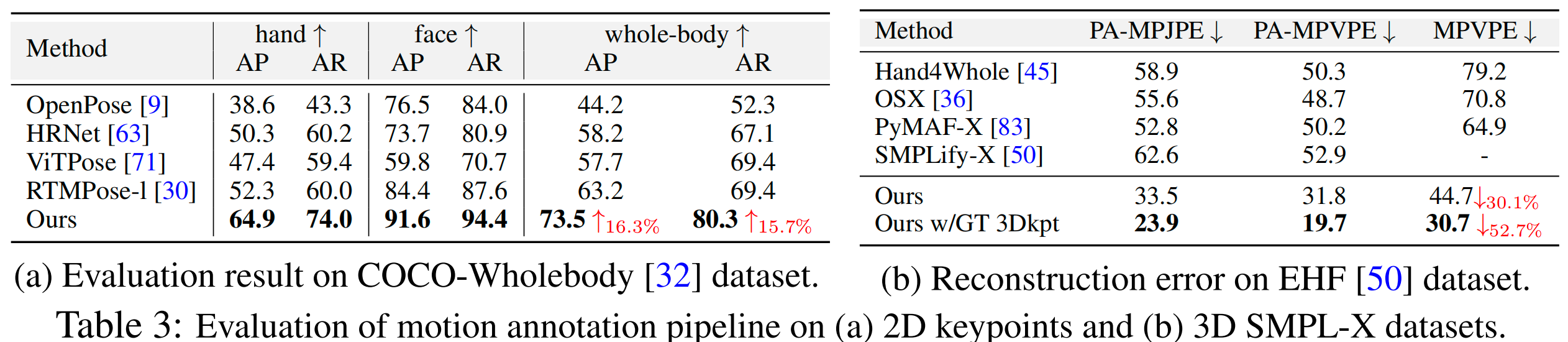 我们的标注流程显著优于现有的 SOTA 2D 全身模型和网格重建方法。