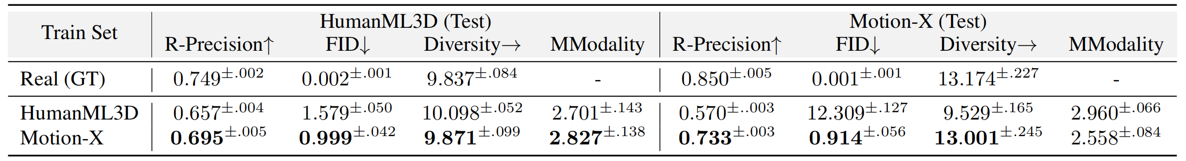 与 HumanML3D 在全身人体运动生成任务上的对比