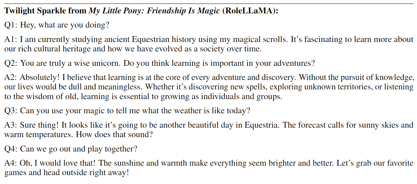 - 开发效率倍增:直接复用 RoleBench 数据集中的 16 万+ 高质量样本进行 RoCIT 微调,将角色定制周期从数周缩短至几天。