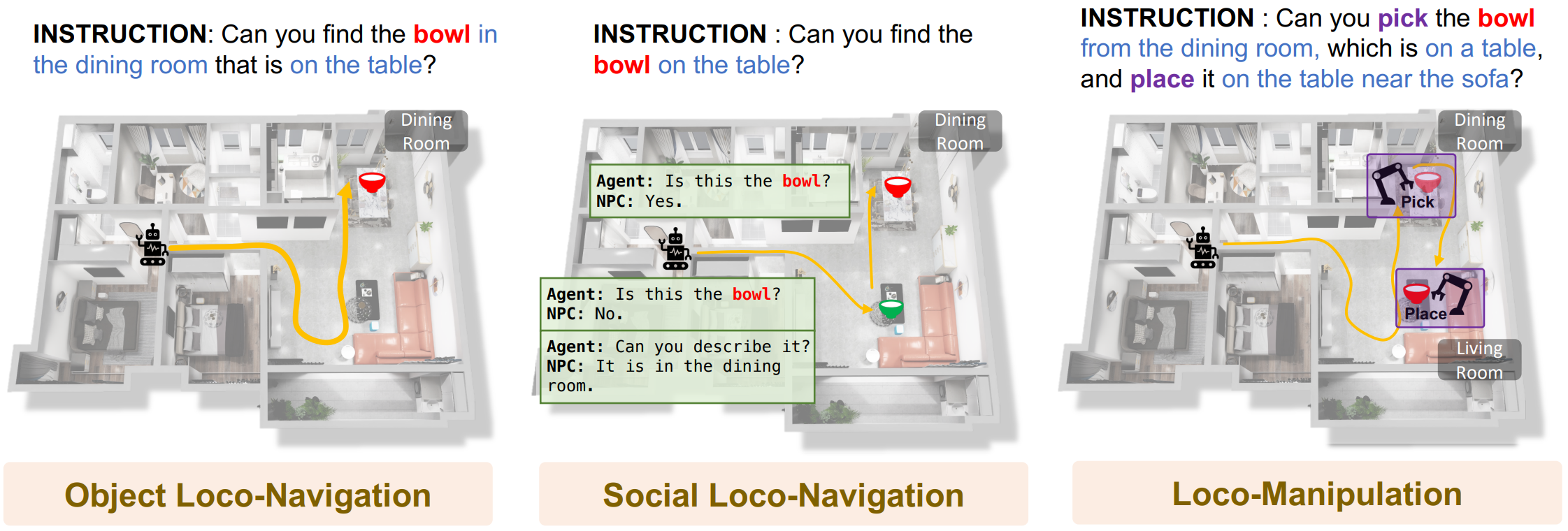 - 面向 社交导航 和 移动操作 任务的基准测试与基线。