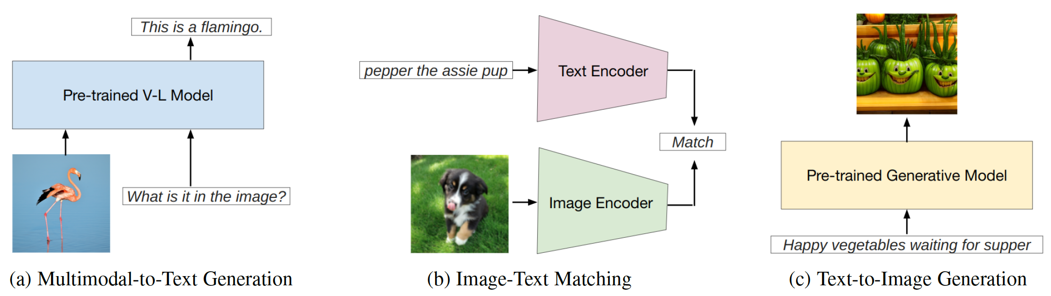 提示工程是一种技术,通过为大型预训练模型添加特定任务的提示(即“提示词”),使其能够适应新的任务。本仓库旨在提供一份关于三种视觉-语言模型(VLMs)上提示工程前沿研究的全面综述:多模态到文本生成模型(如Flamingo)、图像-文本匹配模型(如CLIP)以及文本到图像生成模型(如Stable Diffusion)(图1)。
