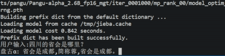 运行后会自动从服务器上下载模型文件到本地,会占用根目录下一定的硬盘空间。 例如对于盘古α约为 15G。最开始运行的时候会编译一些CUDA算子,这会花费一些时间进行加载。