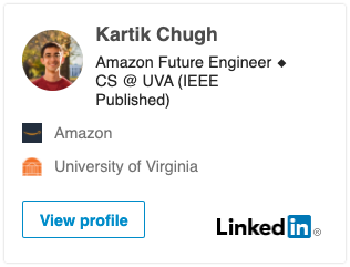 Kartik 是弗吉尼亚大学二年级学生,目前在亚马逊 Alexa 团队实习。他热衷于开源项目,尤其擅长 API 设计和开发有趣的机器学习工具。