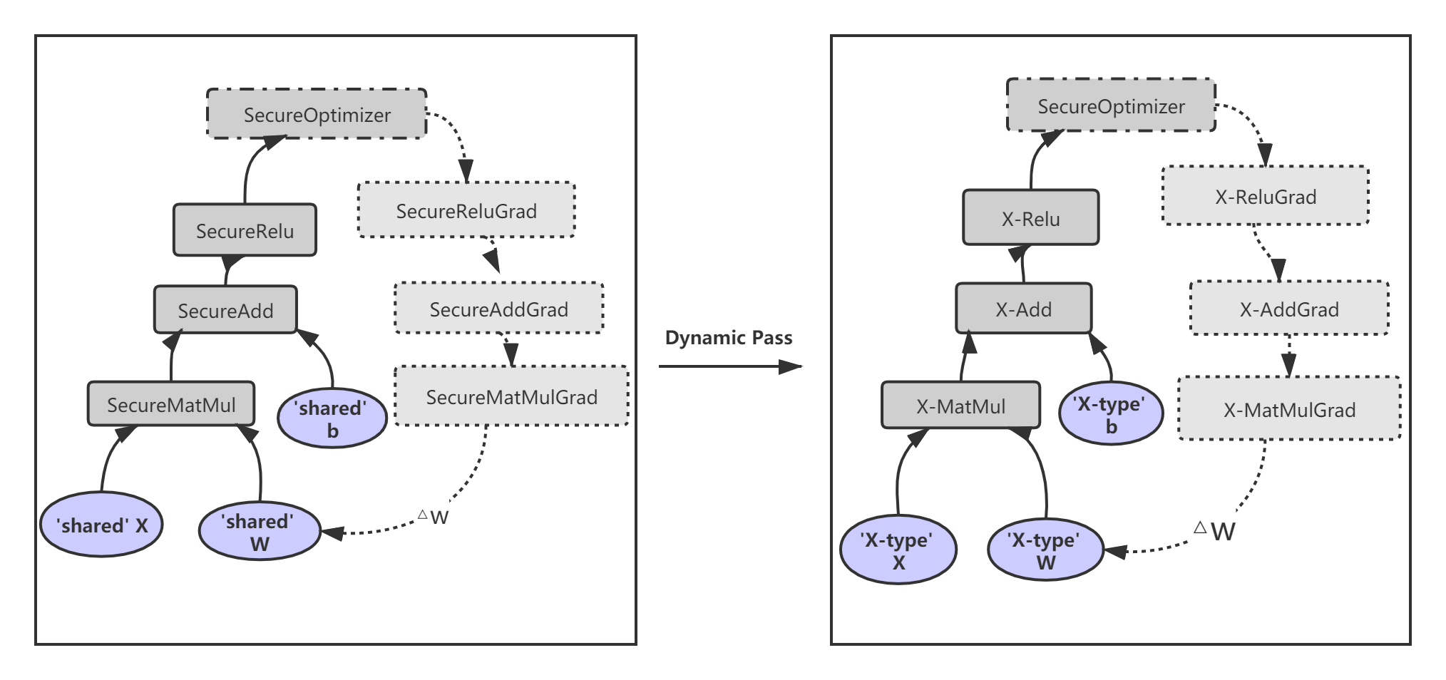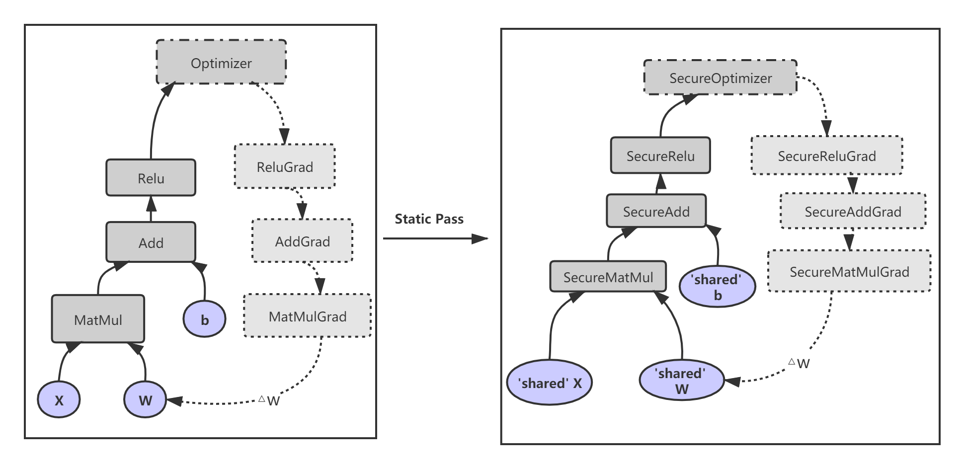 当运行您的 Rosetta 程序时,首先会转换原生的 TensorFlow 数据流图,在此过程中,图中的原生操作会被替换为 SecureOps。