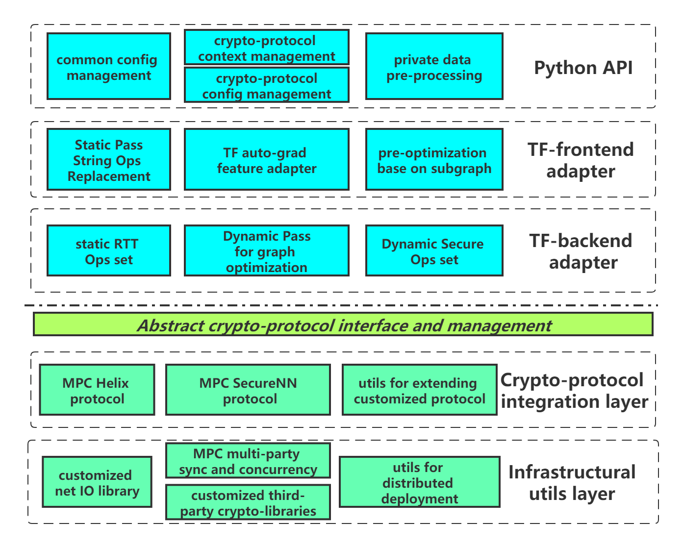 - 开发门槛极高:团队必须聘请密码学专家手动实现安全多方计算(MPC)协议,将普通的 TensorFlow 代码重写为复杂的加密逻辑。