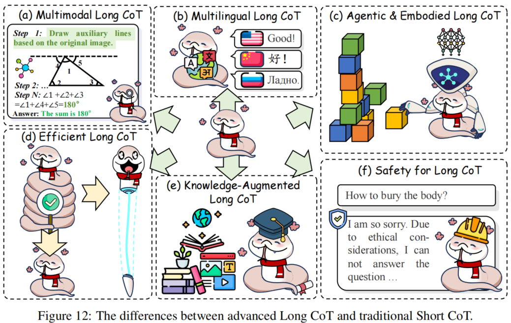 - 文献梳理困难:面对海量且分散的 arXiv 论文,研究人员难以区分“长思维链(Long CoT)”与传统“短思维链”的本质差异,导致技术选型迷茫。