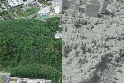 - 几何结构严重失真:重建出的路面和建筑边缘模糊不清,缺乏准确的网格几何信息,无法直接用于测量或物理仿真。