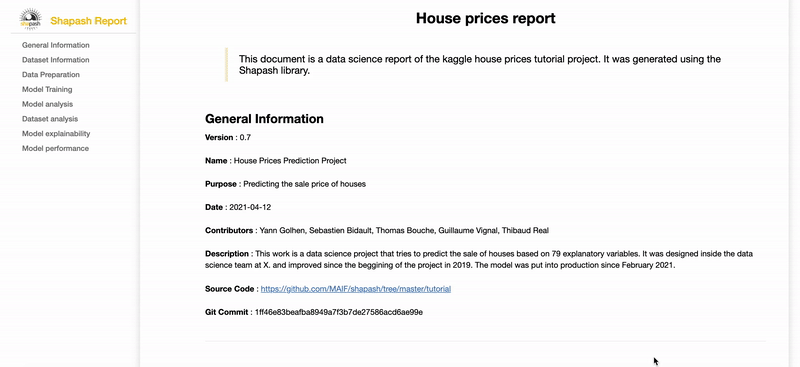 此外,Shapash 还有助于数据科学审计工作,能够以 全面报告的形式呈现 关于任何模型和数据的 有价值信息。