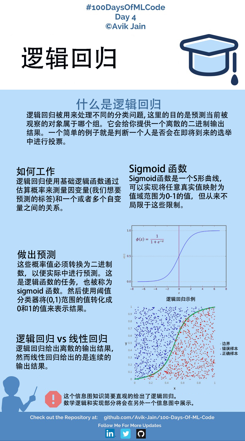 它主要解决了新手入门机器学习时面临的“知识碎片化”和“无从下手”的痛点。通过结构化的日程安排,学习者可以避免在海量资源中迷失,按部就班地建立完整的知识体系。项目中不仅包含清晰的图解信息流(Info-graphs)来直观展示算法原理,还提供了基于 Python 和 Scikit-Learn 的详细代码示例,确保理论与实践紧密结合。
