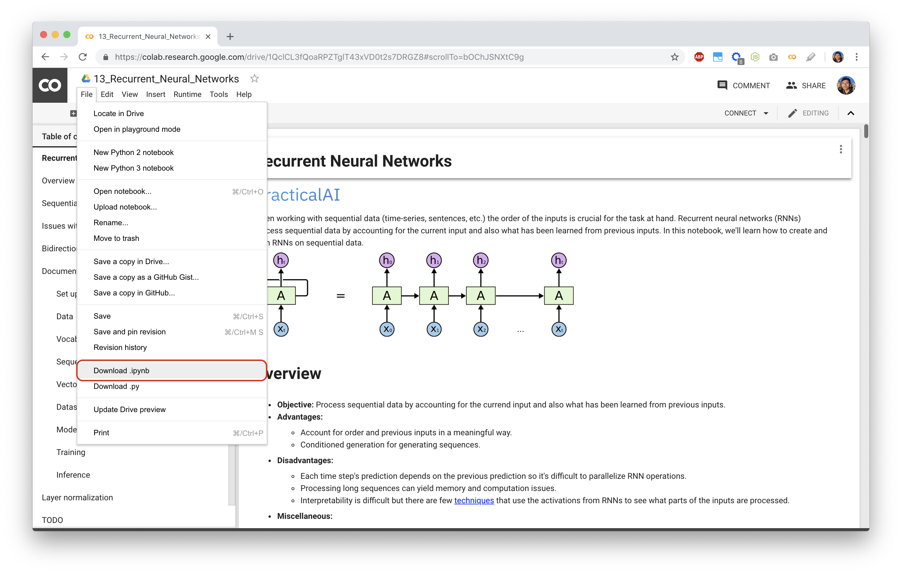 - 修改后下载 Google Colab 笔记本为 .ipynb 文件;