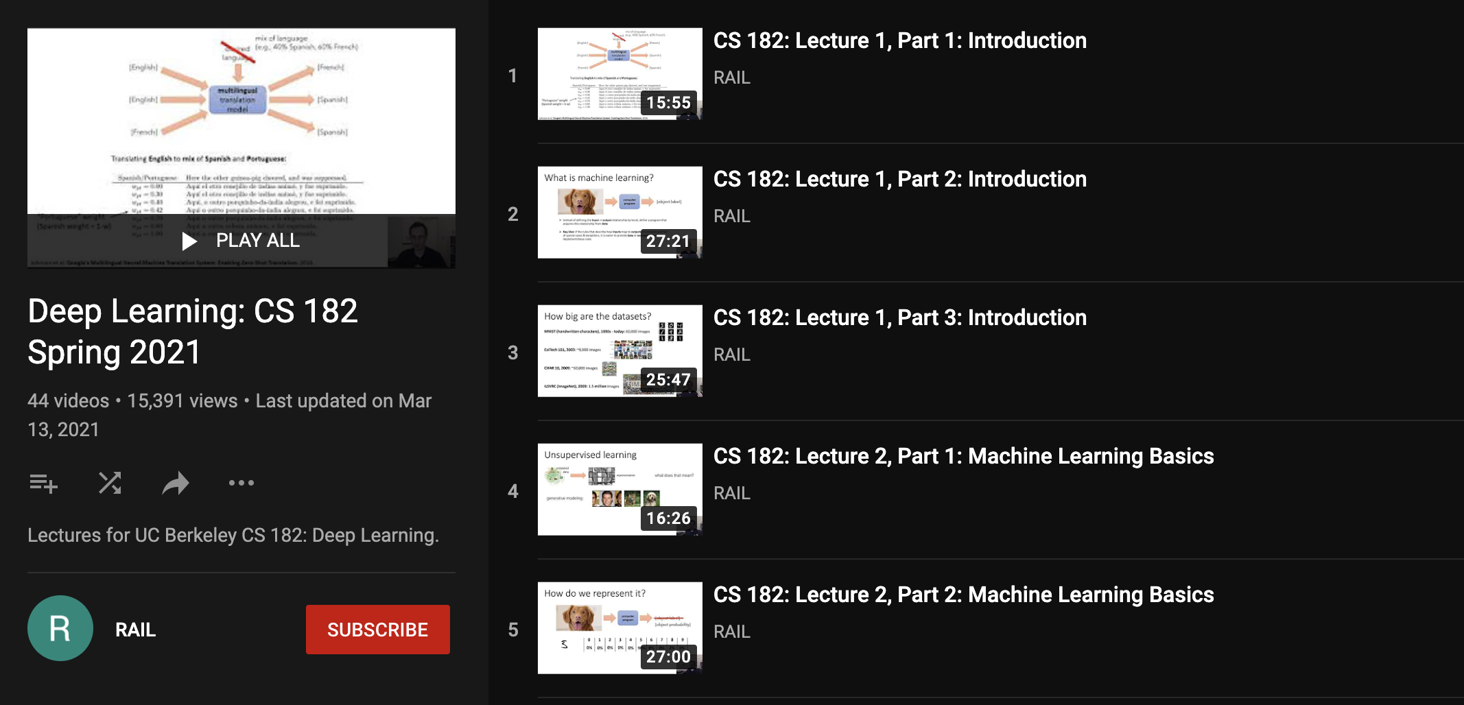- 加州大学伯克利分校CS 182:深度学习 | 2021年春季