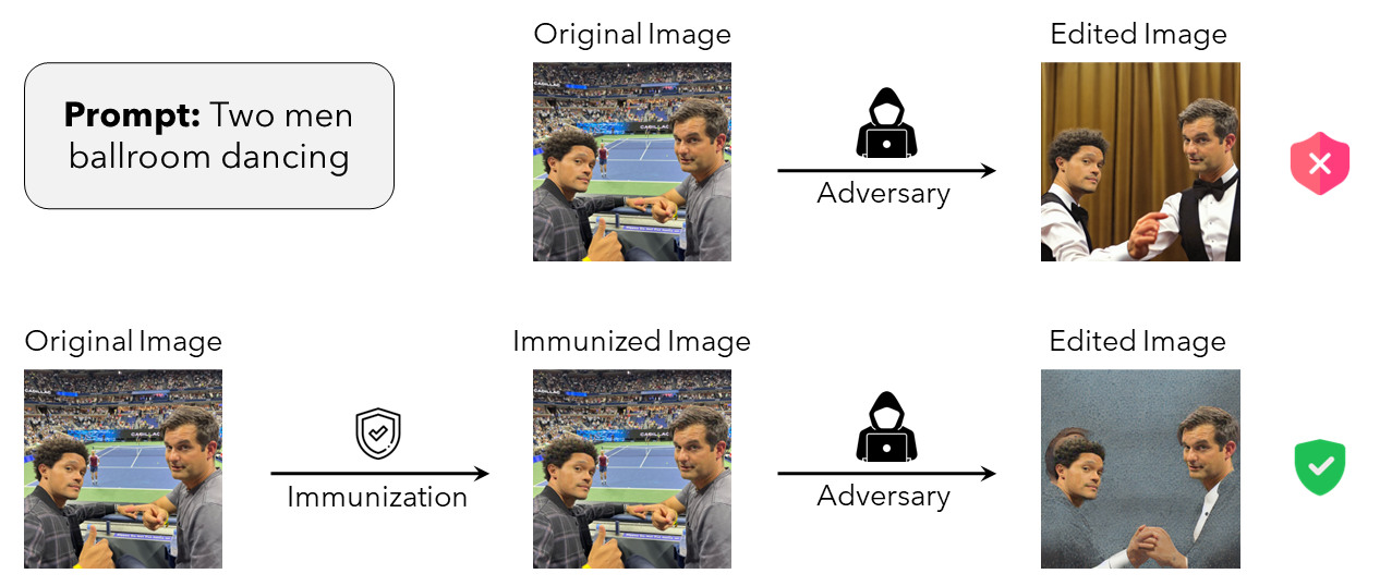 - 摄影师在发布前对图片施加不可见的对抗性扰动,大幅提高了恶意编辑的计算门槛和失败率。