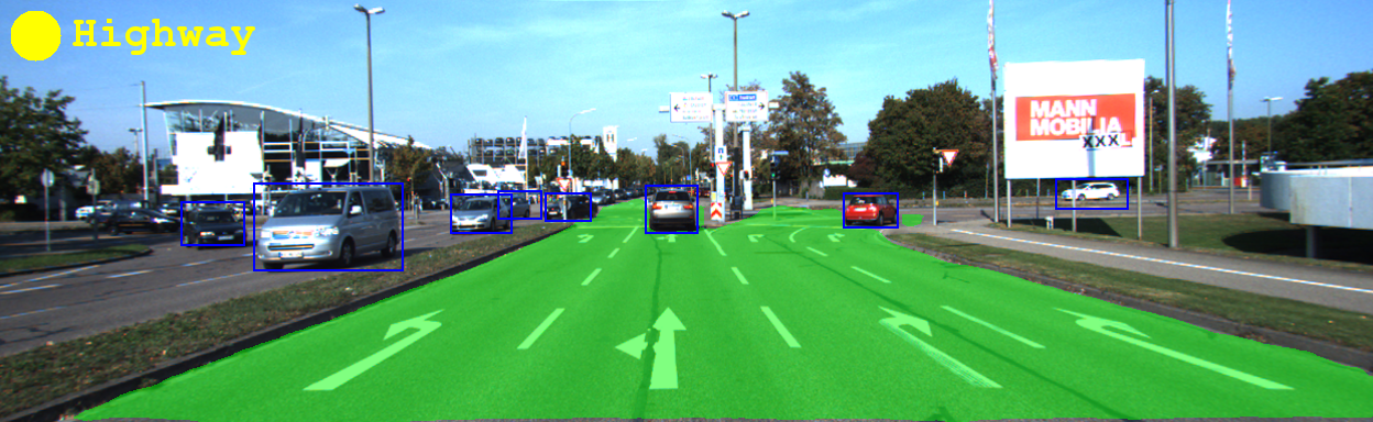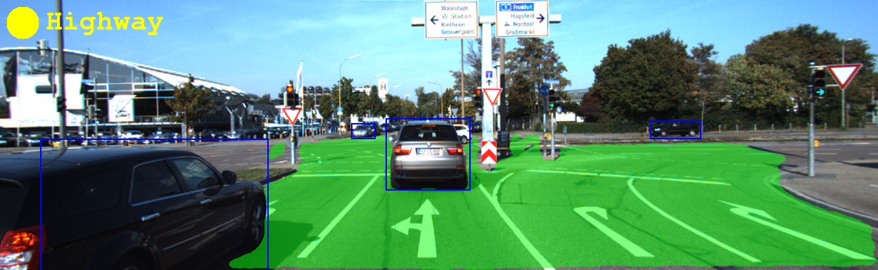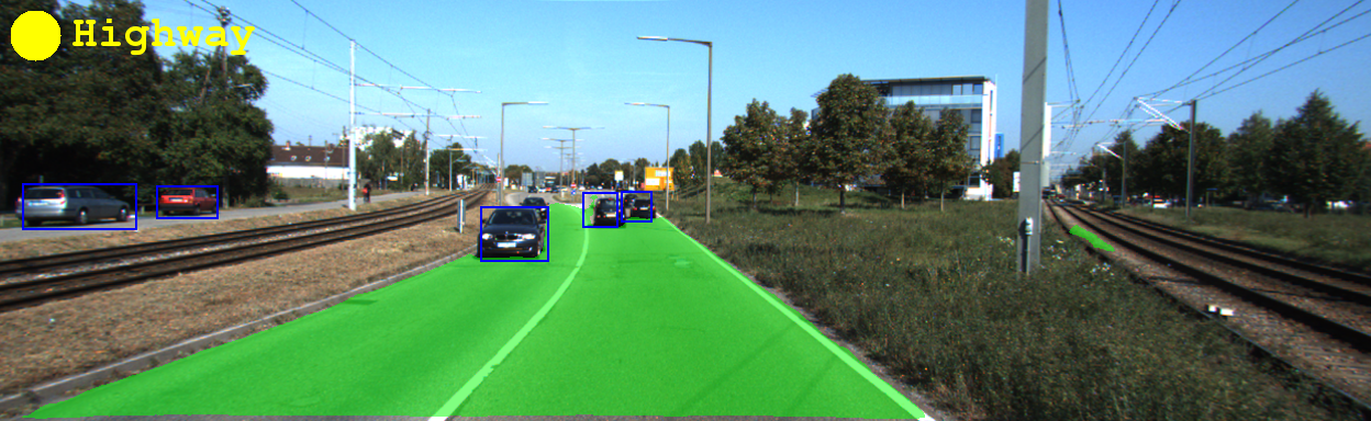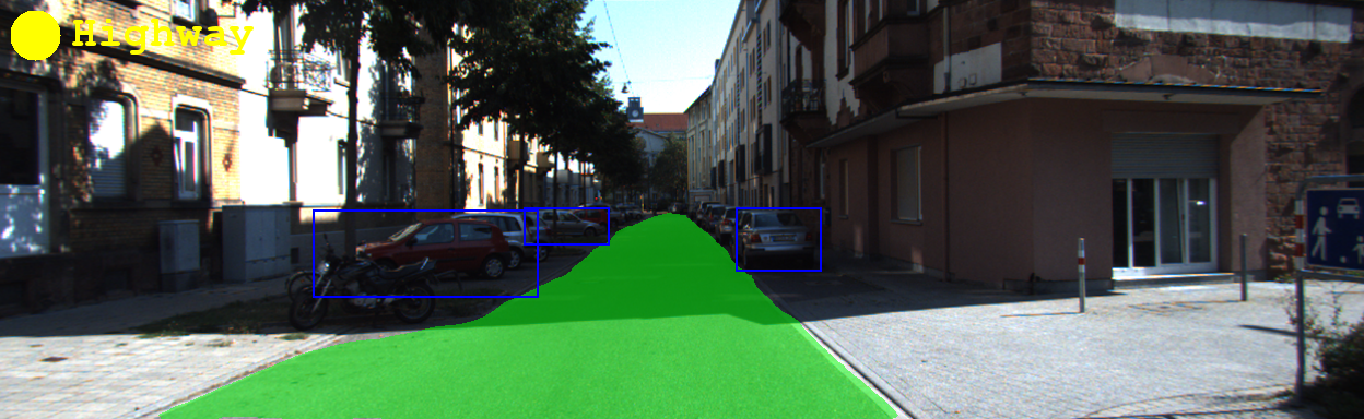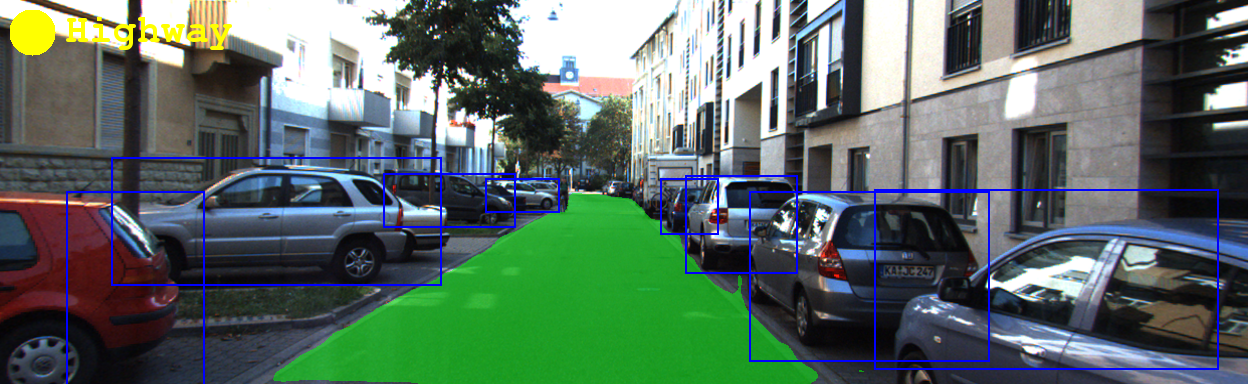 MultiNet 能够联合执行道路分割、车辆检测和街道分类任务。该模型在分割任务上达到了实时速度和最先进的性能。有关模型的详细描述,请参阅我们的论文。