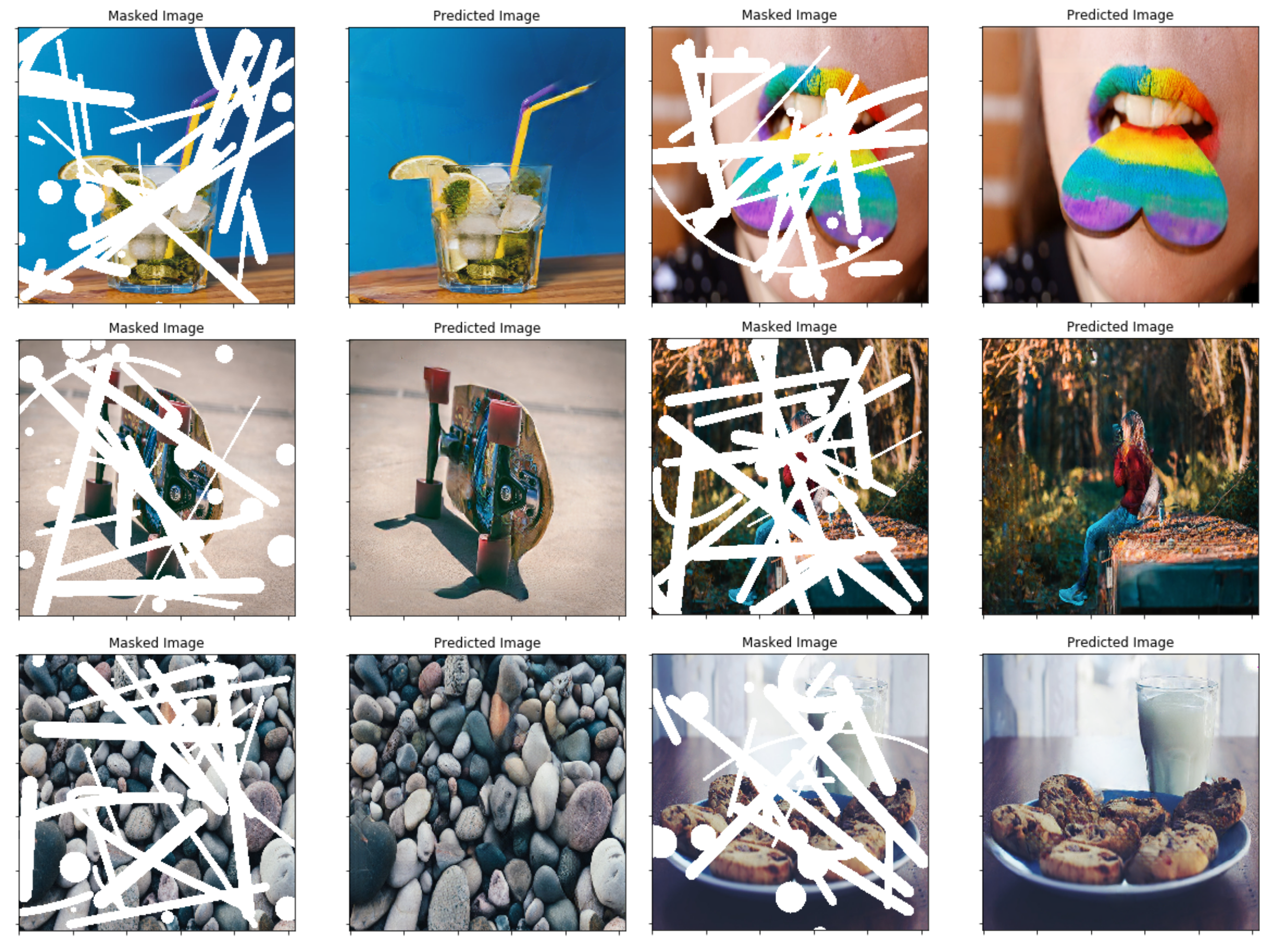 论文中使用了一种基于视频中连续两帧之间遮挡与非遮挡关系的技术来生成随机不规则掩码。而我则选择简单地编写一个掩码生成函数,利用 OpenCV 绘制一些随机的不规则形状作为掩码。不过,后续引入新的掩码生成技术应该不会有问题,而且我认为使用这种方法得到的结果也相当不错。