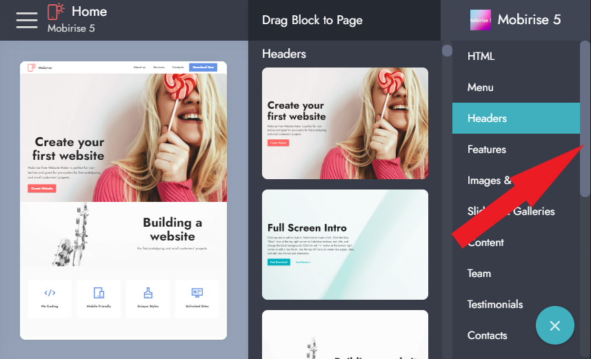 Mobirise HTML 页面创建工具 v2.8.4 的新功能:
